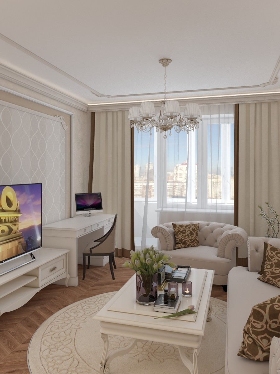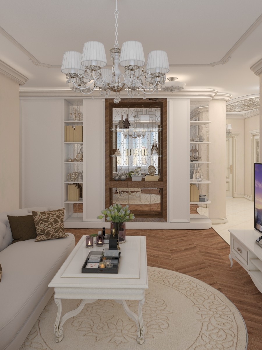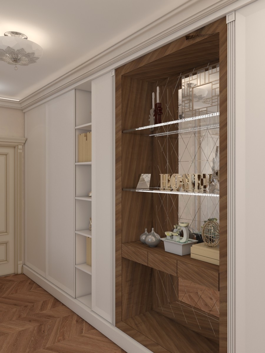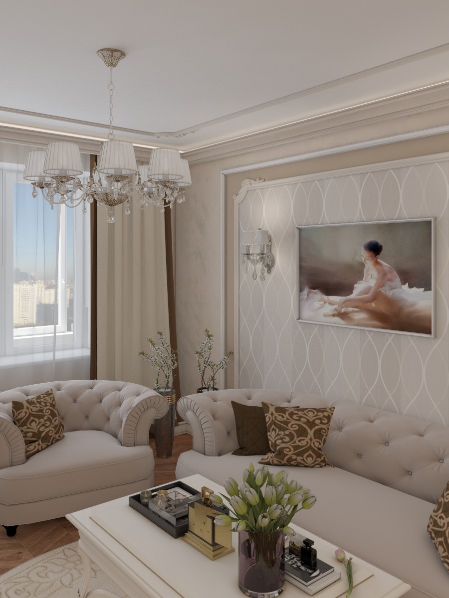 Квартира получилась легкая, светлая, в стиле современной классики. Планировка квартиры разработана для комфортного проживания большой семьи с ребенком, где продуманы все детали. Плавные, закругленные углы, стены, что важно для детей, много встроенной мебели, много мест хранения. В квартире предусмотрены различные варианты освещения. В отделке используются только натуральные материалы, гипсовый декор по индивидуальному заказу.