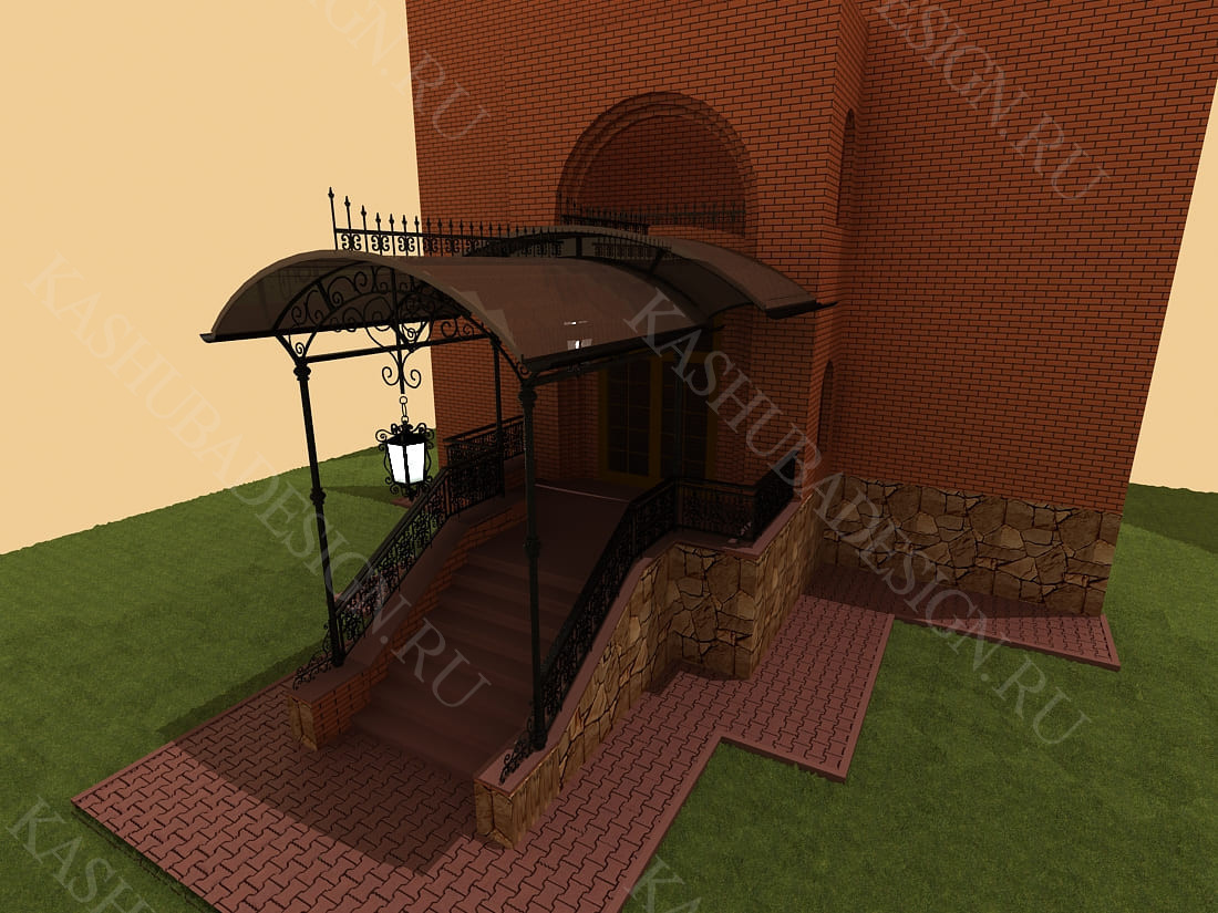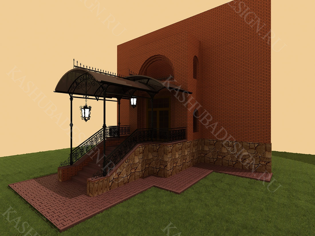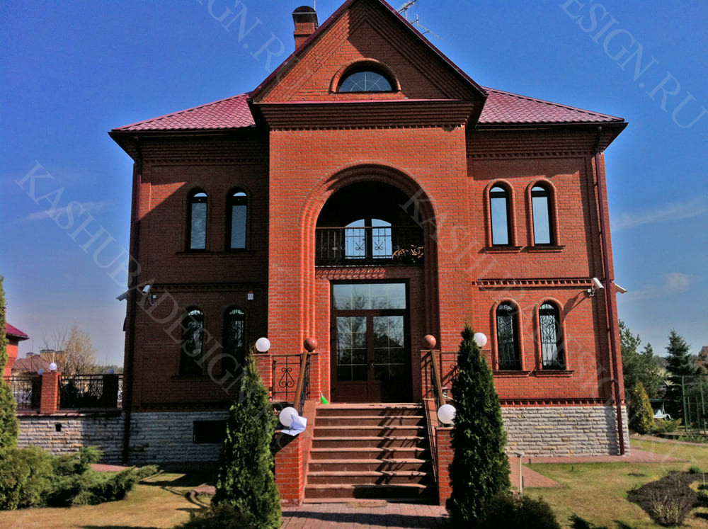 Особняк в Подмосковье решен с учётом желаний заказчика. После завершения строительства возникла необходимость в появлении крыльца, удачно завершившего ансамбль здания интерьера помещения.