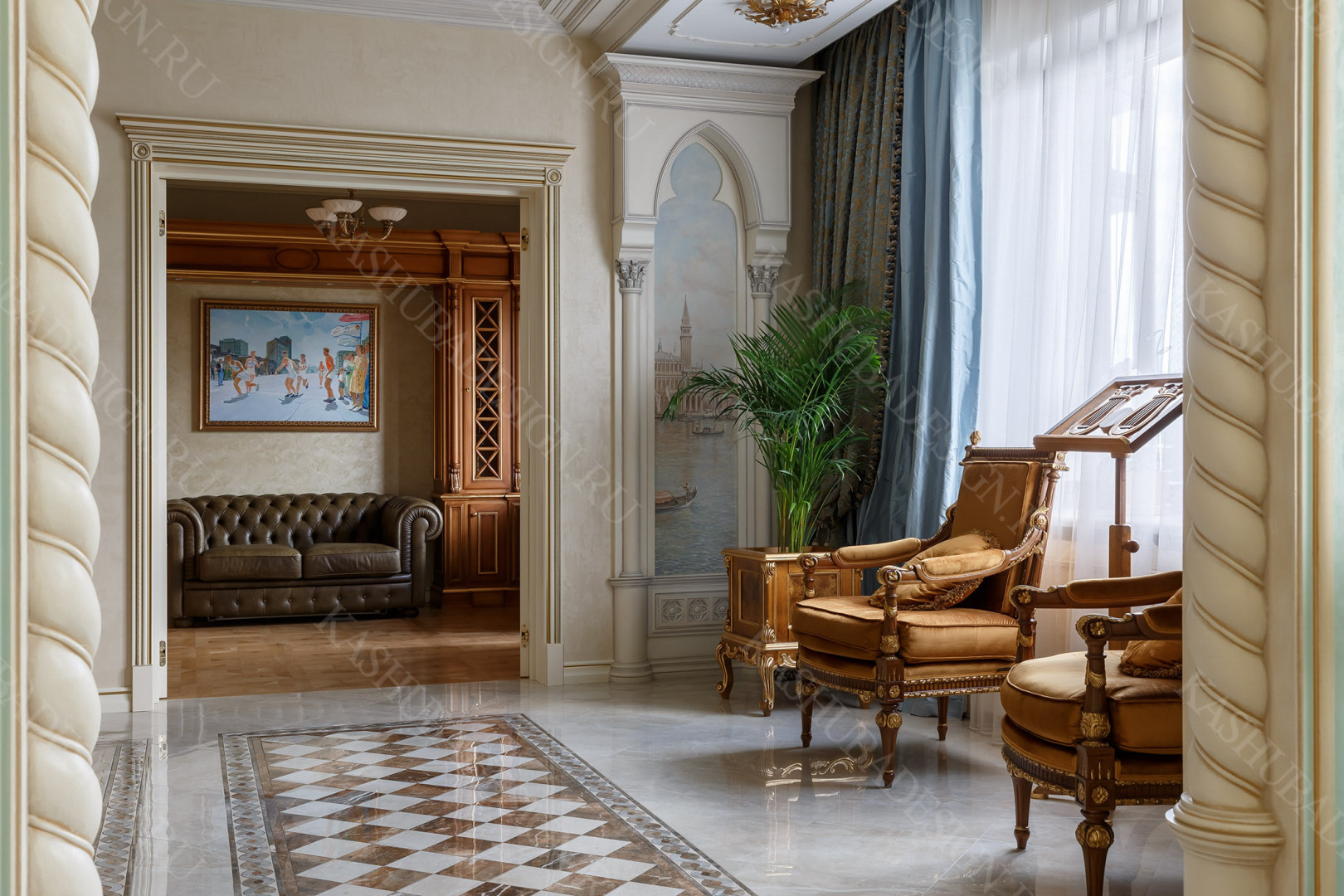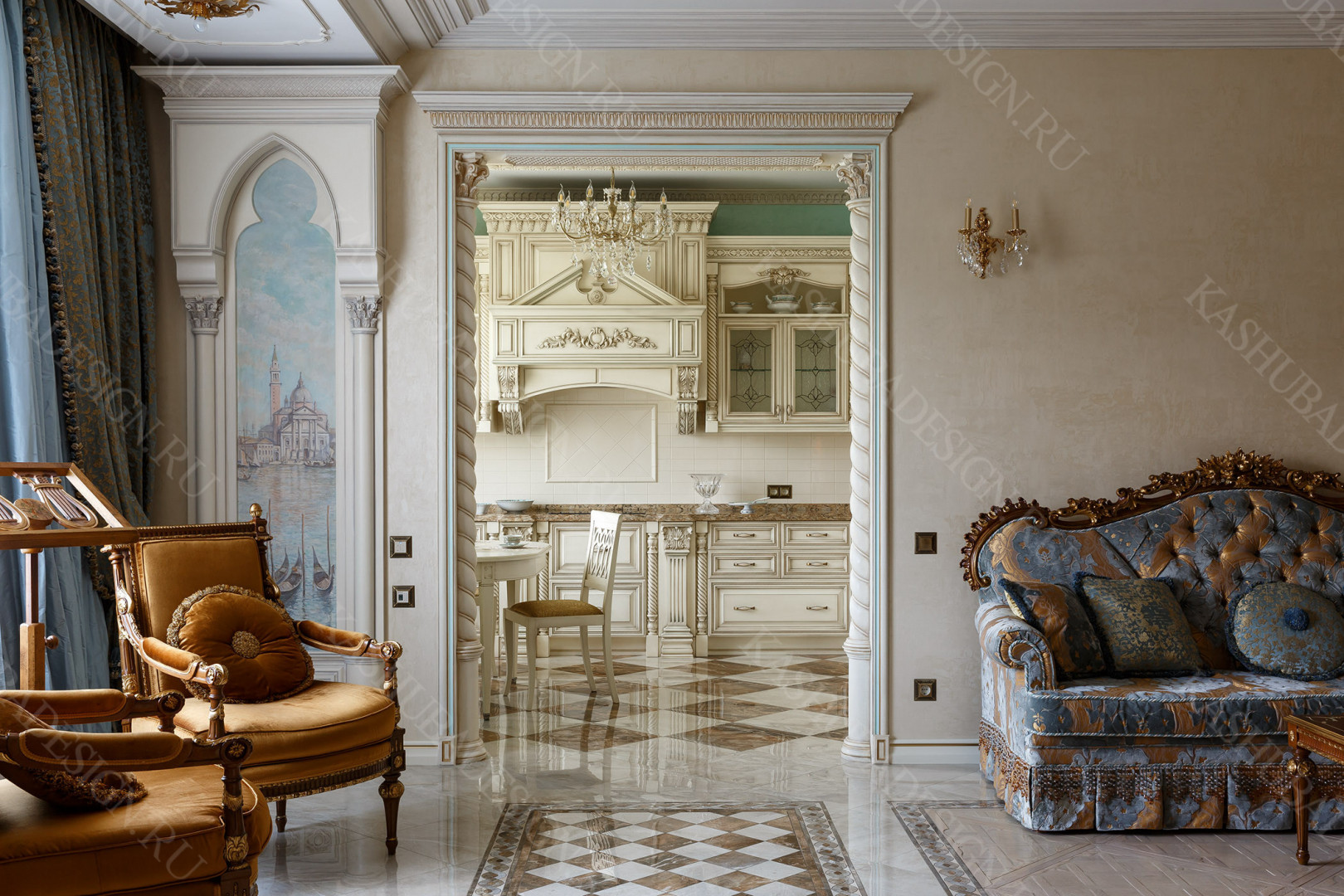 Вечна потребность человека в декорировании своего повседневного быта, окружающей реальности бытия. По - прежнему, предметы роскоши – указатели социального статуса. Нужно уметь проецировать свое прошлое на свое настоящее. Направьте усилия специалистов Международного бюро интерьера и архитектуры «KASHUBA DESIGN» на изменение и улучшение своей жизни. Моя Венеция» - таково может быть название гармоничных интерьеров этой роскошной квартиры, удовлетворяющей пожелание заказчиков. Венеция, Made in Italy – таков был ориентир заказчиков, заданный дизайнерам Международного бюро интерьера и архитектуры «KASHUBA DESIGN».