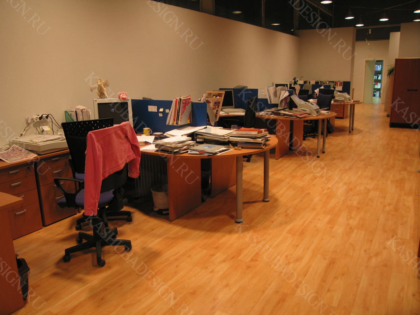 Площади помещений мною были частично увеличены за счёт антресолей и отданы под офисы для нашего персонала, часть их имела стеклянные, прозрачные стены. Огромные окна остались, т.е. фасад не изменялся, только входная группа.