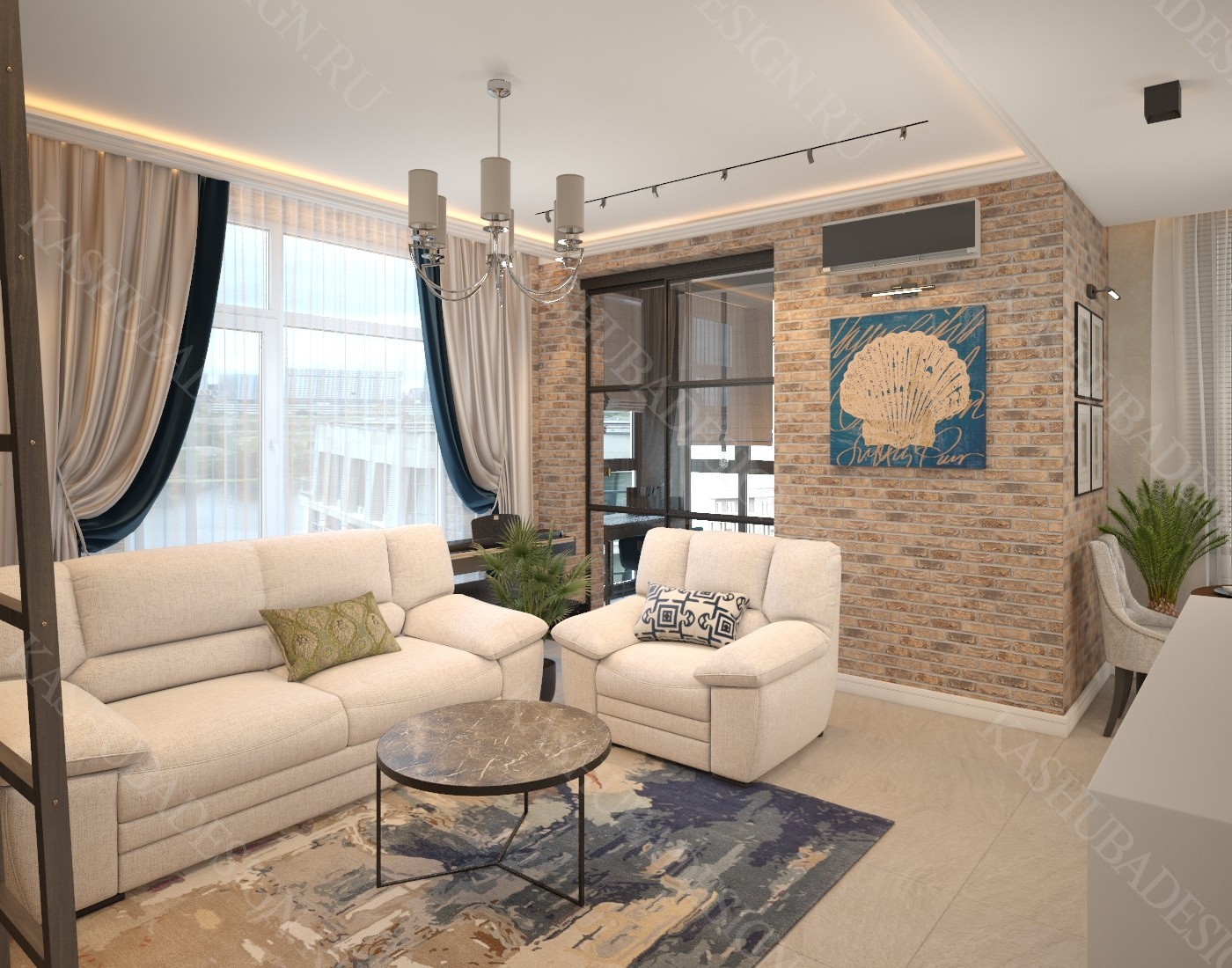 Дизайн-проект квартиры 69 м2. Дизайн квартиры выполнен в современном стиле, с элементами лофта, эко стиля.