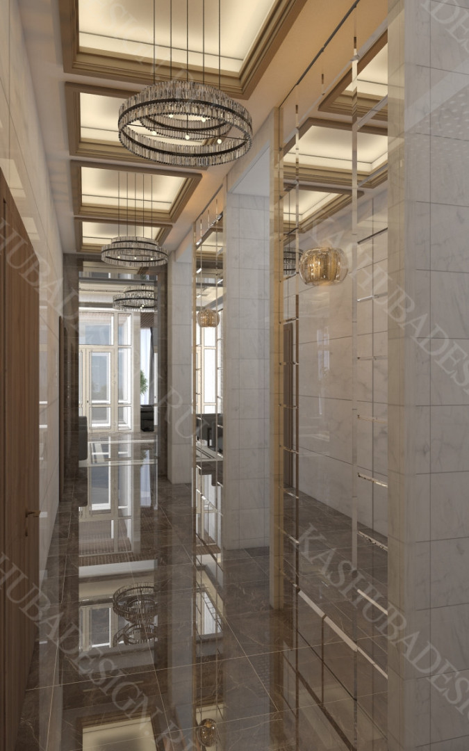 Комплекс помещений мансардного этажа для семейной пары в доме площадью 1700м2 : спальня, гостиная- кухня и санузел - выполнены в классическом стиле. Особенностью...