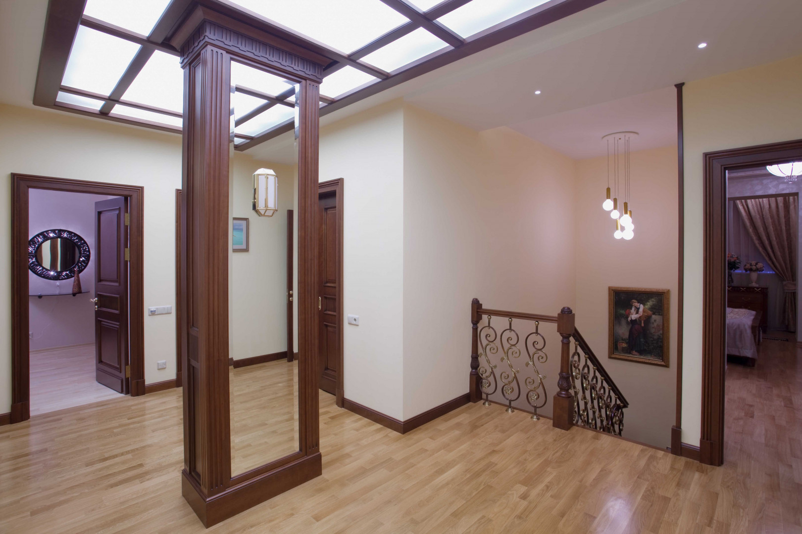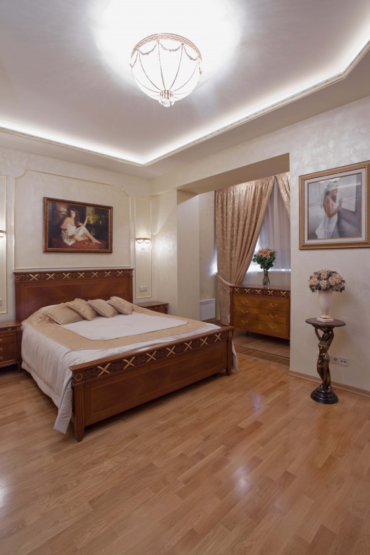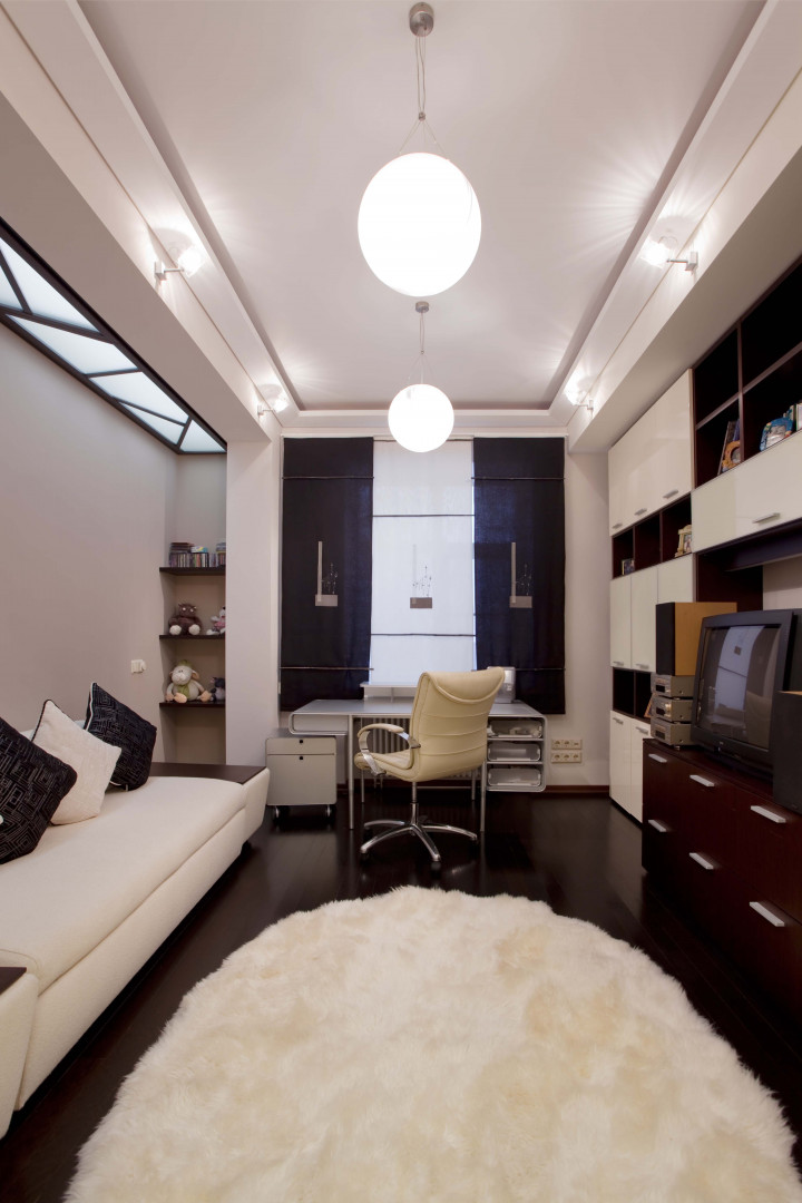 Данные помещения выполнены в строгом стиле, который придает торжественный, возвышенный тон всей квартире. С точки зрения логики оформления дизайн элитного интерьера, улавливаются главные акценты, пропорции, хотя арт фото современных интерьеров не дают достаточно полного представления о характере всего внутреннего убранства большой квартиры. Эстетика и пластика предметов интерьера, использование натуральных материалов, витражей, их формы, обращены к современному человеку. Словом, дизайн двухуровневой квартиры – красивый интерьер без претензий, лучший интерьер для жизни.