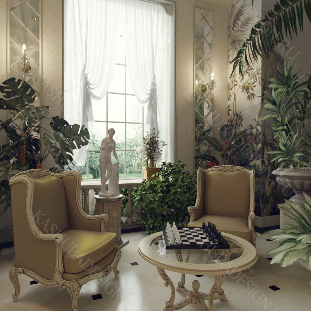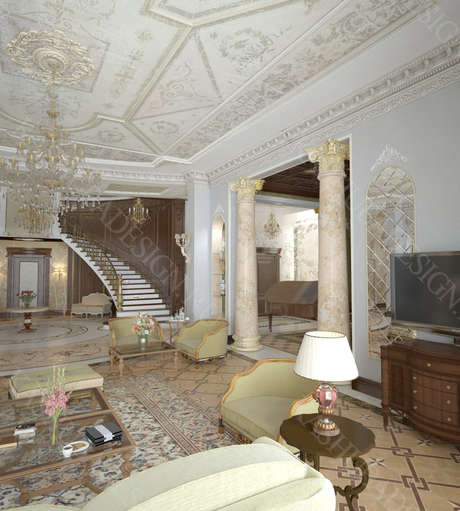 Дизайн резиденции, особняка, безусловно, сложнее, он отличается от дизайна элитных домов, ибо до этапа дизайн-проекта нужен учет ландшафта, почвы, растительности и пр. факторов. Т.е. до проекта, даже эскизов, начинается большая работа. Здесь за месяц никому не управиться, даже несмотря на нашу богатую практику, связанную с усадьбами, особняками, коттеджами, загородными домами. Мы вместе с заказчиками выбрали нужный стиль, составили проект, подобрали строителей, материалы, мебель и т.д. Вопрос цены за работу не стоял, оплачивали и срочные поставки оборудования с гарантиями производителей, главным был оперативный итог, люксовый конечный результат, которым заказчик остался доволен.