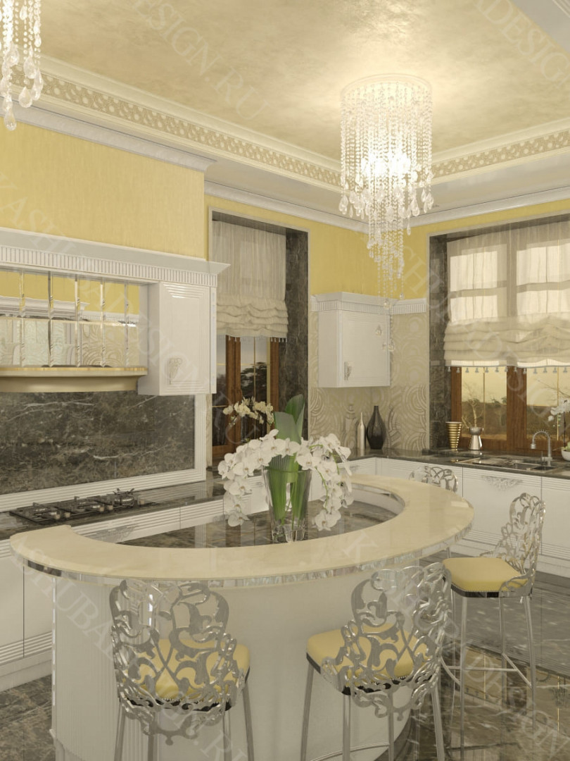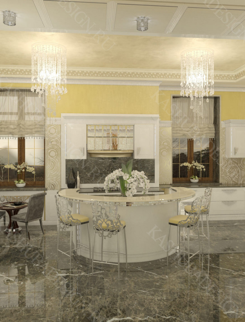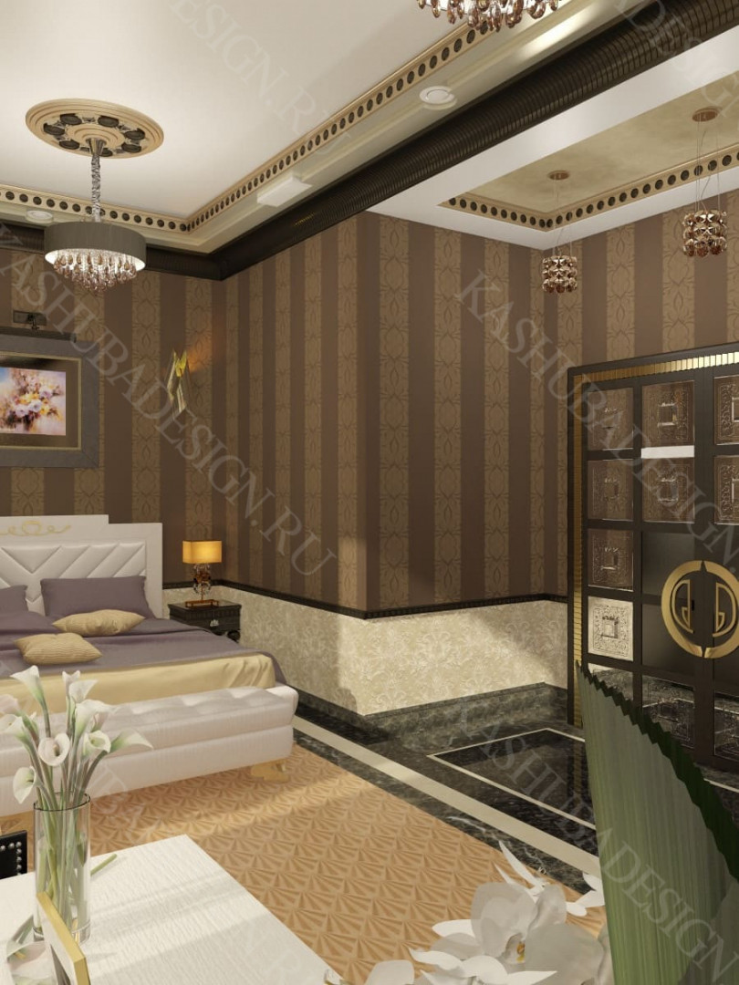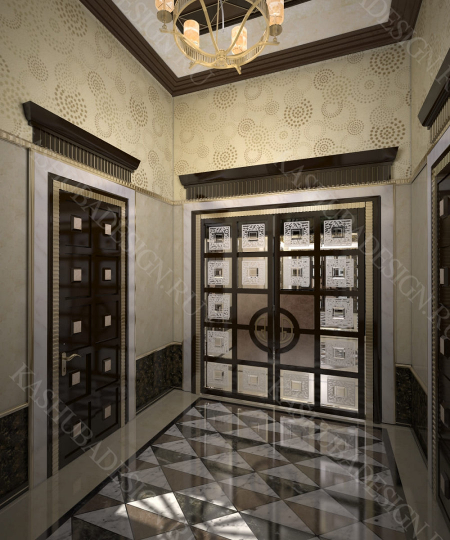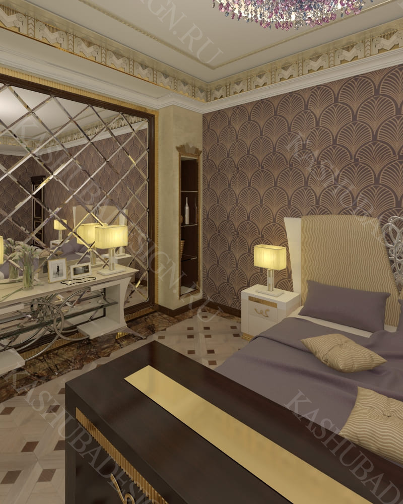 Материальная действительность и порядок форм, множество фигур и элементов, их взаимосвязи и совместное функционирование вызывают очевидные ощущения комфортной действенности. На данном объекте отчетливо видно, что дизайн интерьера - междисциплинарное поле поведения сложных систем. Здесь проявилась синергия, общая энергия, совместная деятельность с креативными заказчиками, сознательно нацеленные на дело, направленные на результат. Объект, дизайн интерьера арт деко, экспонировался Международным бюро интерьера и архитектуры «KASHUBA DESIGN» на международных выставках, вызвал заинтересованность, возможна публикация в профильном журнале.