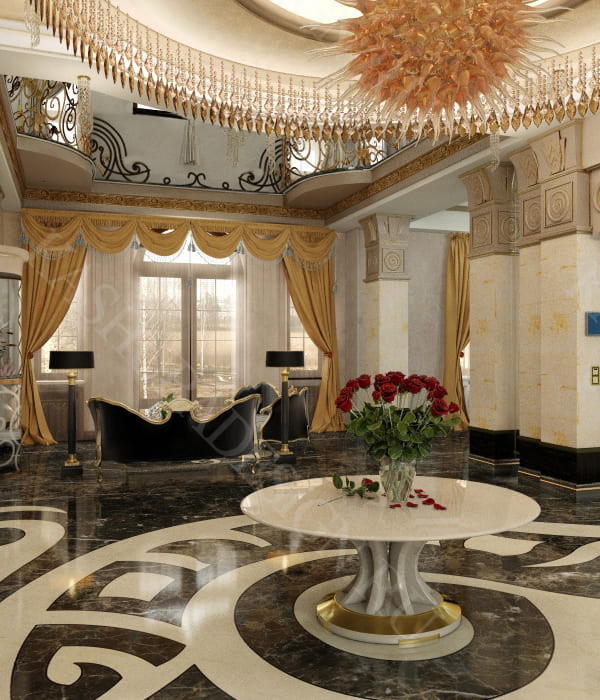 Закономерная организация связи архитектурных понятий и художественных символов, в представленном фиксированном многообразии красоты дизайна интерьера дома, выступает как целостная структура, как результат адекватного изображения продуманного стиля. Усиление классической архитектурной композиции начинается с конкретных планировочных решений за счет создания новых осей симметрии, эксклюзивного визуального ряда.
