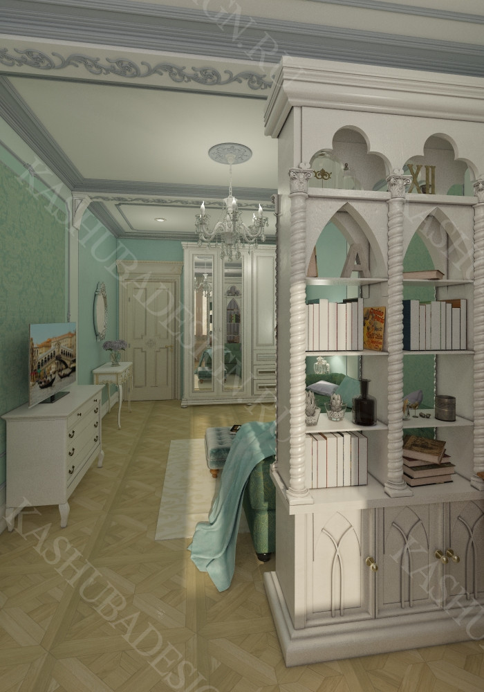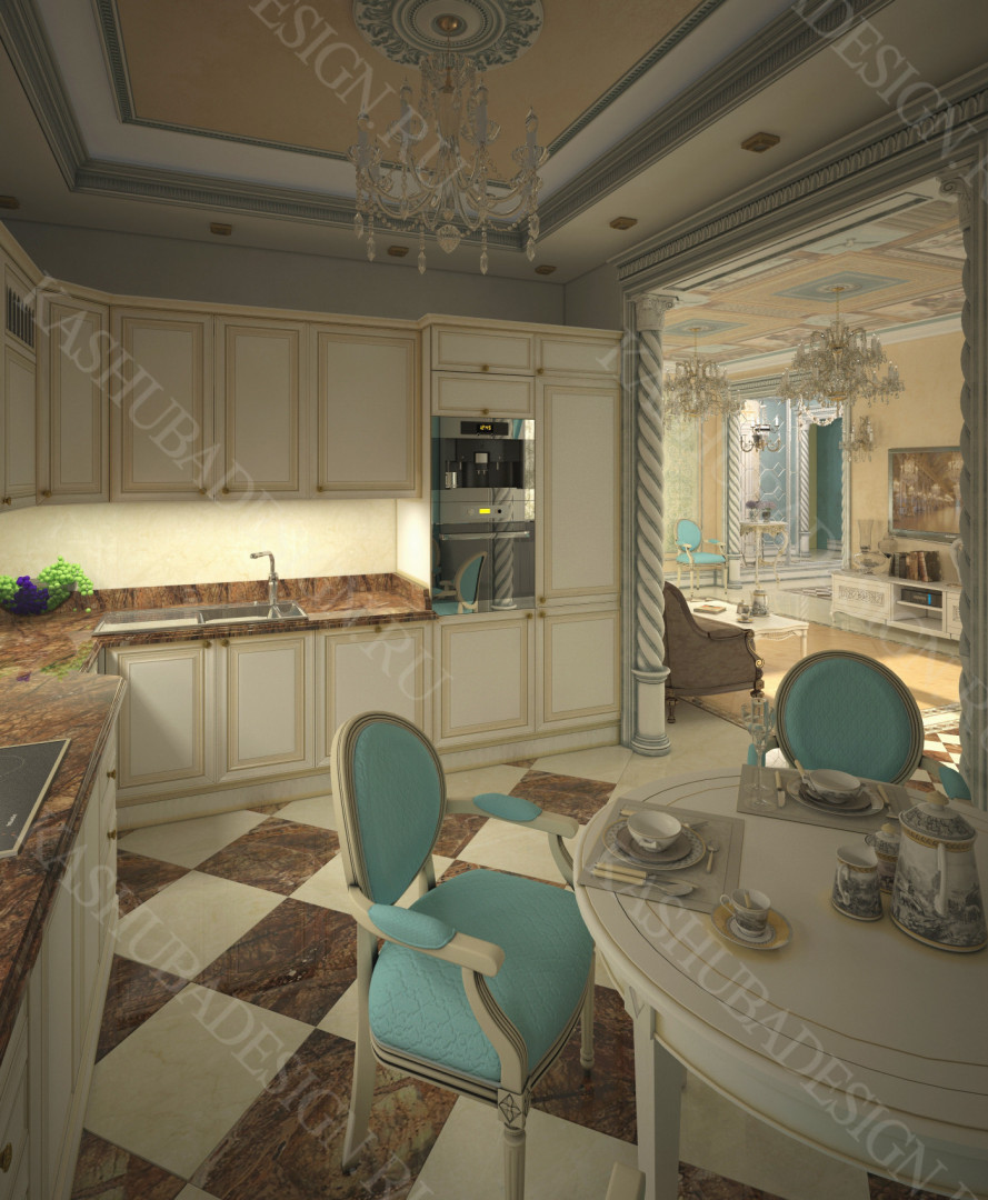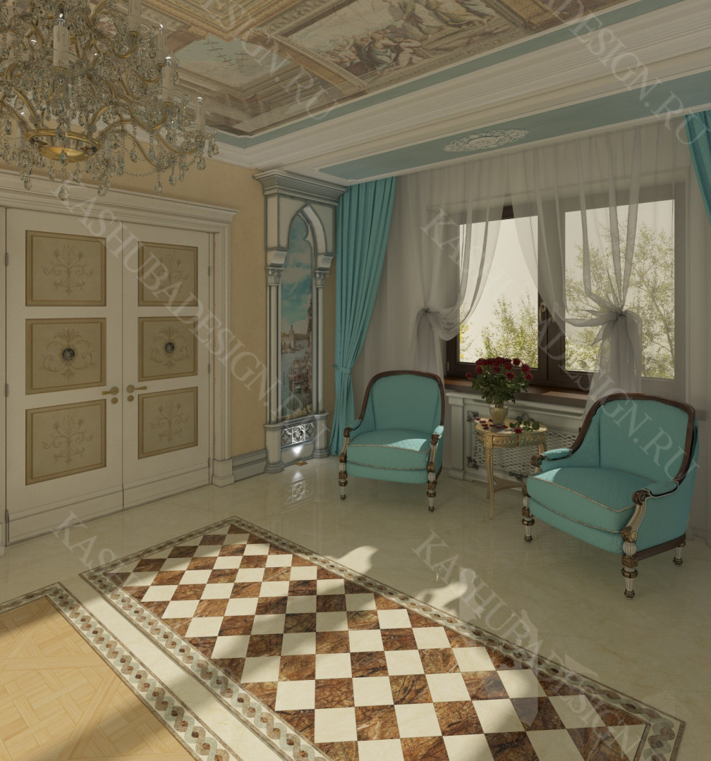 «Моя Венеция» - таково может быть название гармоничных интерьеров этой роскошной квартиры, удовлетворяющей пожелание заказчиков. Венеция, Made in Italy – таков был ориентир заказчиков, заданный дизайнерам Международного бюро интерьера и архитектуры «KASHUBA DESIGN», неоднократно там пребывавших. Но как все реализовать? Работа шла сложно. В итоге понравилось всё, понравилась тема цвета моря в интерьере, живописи, как будто любопытная трактовка картин Веронезе.