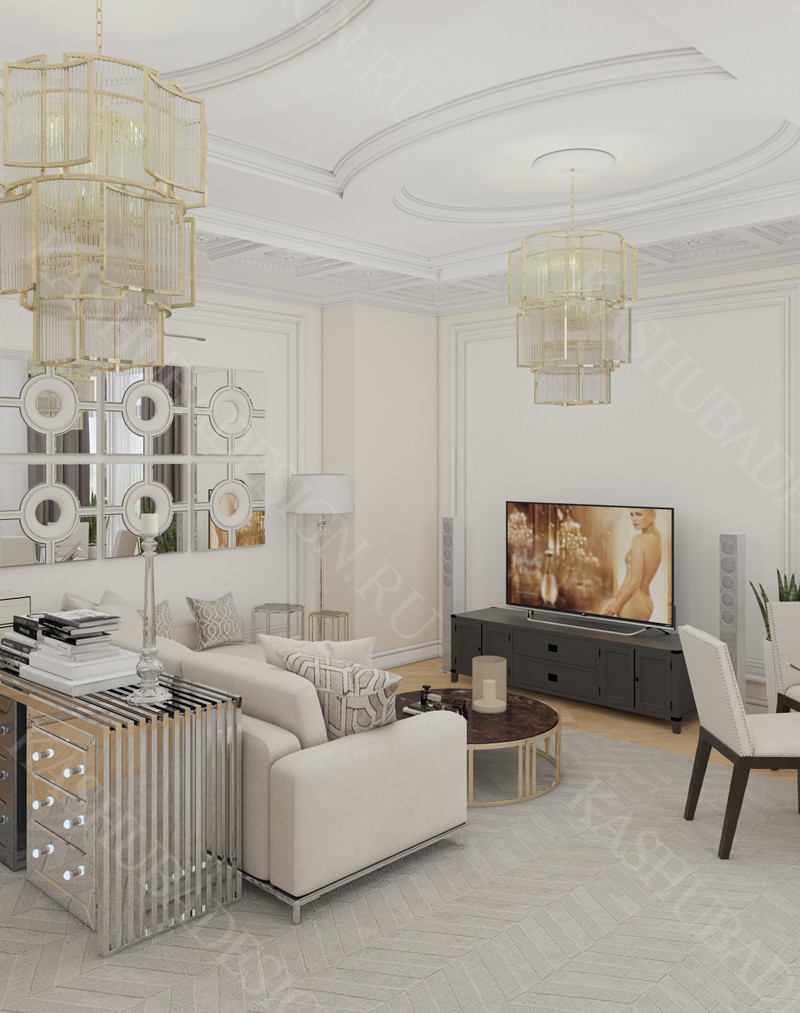Международным бюро интерьера «KASHUBA DESIGN» были выполнены визуализации интерьера, подготовлены рабочие чертежи, подобраны мебель и аксессуары.