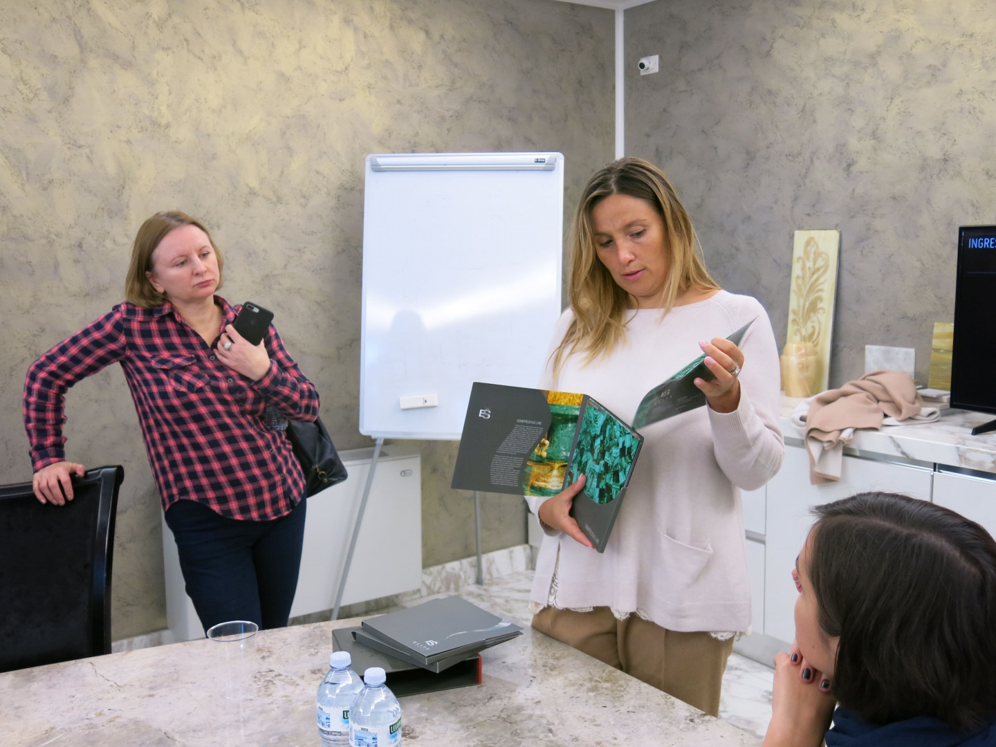 Правление бюро откликнулось на приглашение совершить незабываемое путешествие в мир изысканного мрамора на фабрике ELITE Stone, посетить её в составе группы. Популярное здание «ELITE interior», на стр. 14 представило интервью с владелицей этой фабрики Татьяной. Приятно, что в начале сентября она родила 2- го ребенка, мальчика. Симпатичная Евгения Райз регулярно предоставляла подробную информацию о поездке, программу мероприятия ELITE Stone. Более того, в первой неделе октября журнал ELITE interior организовал завтрак в одном из уютных московских кафе для личного знакомства и предоставил подробную программу путешествия.