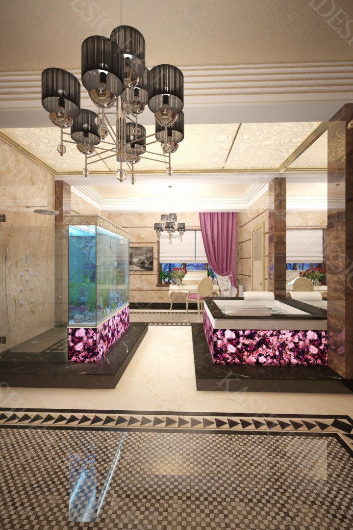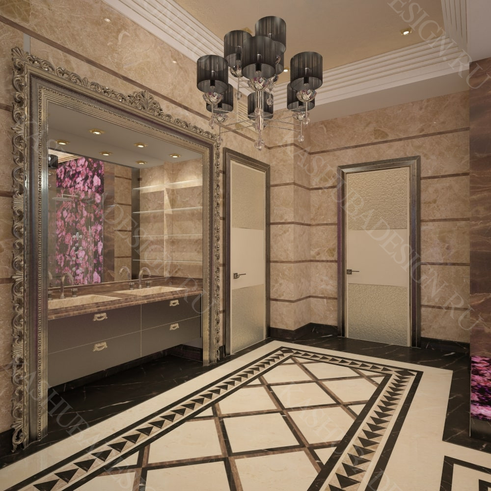 Пример работы в загородном доме ,где все полы,стены отделаны камнем по индивидуальным эскизам архитектора.