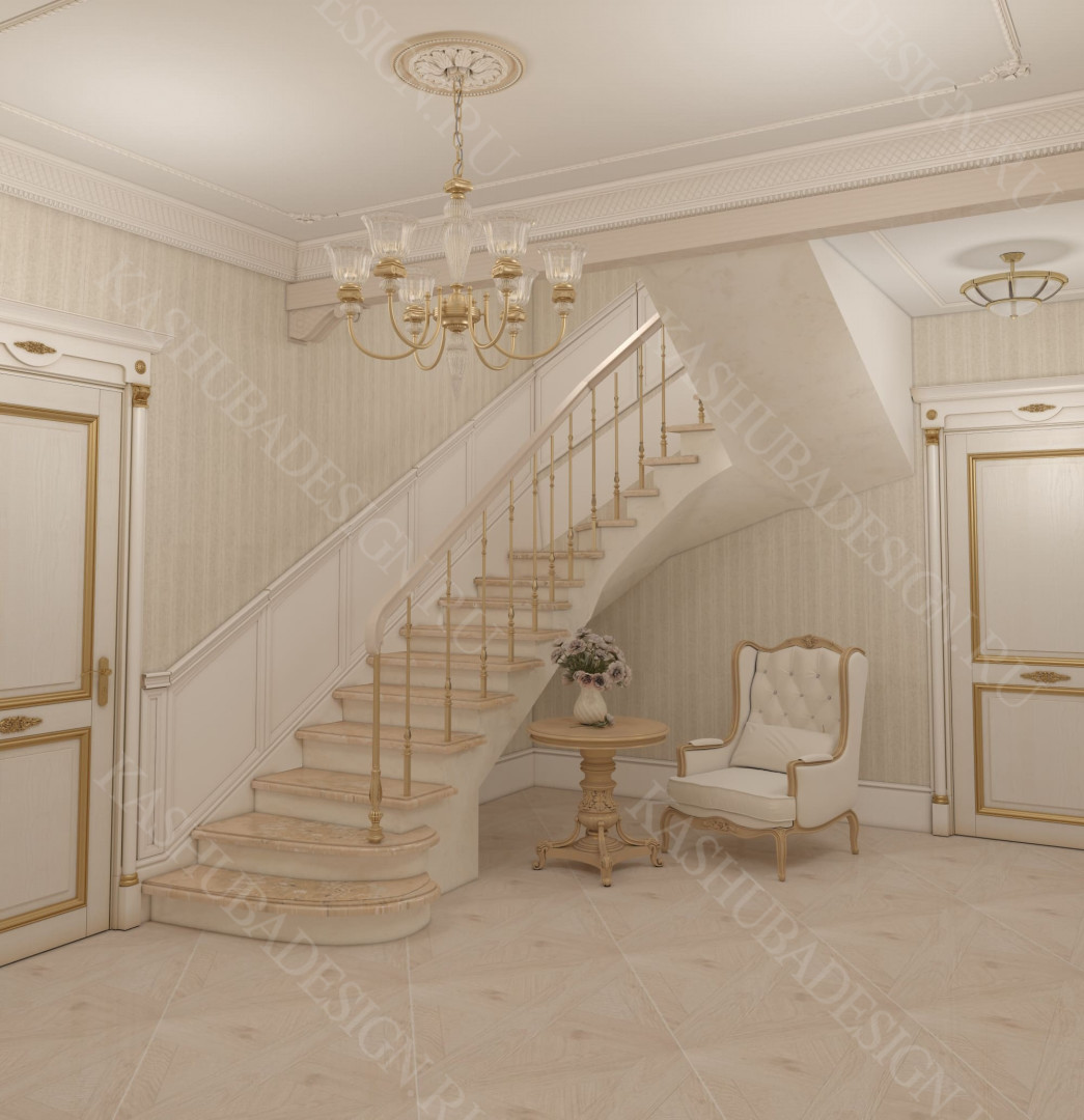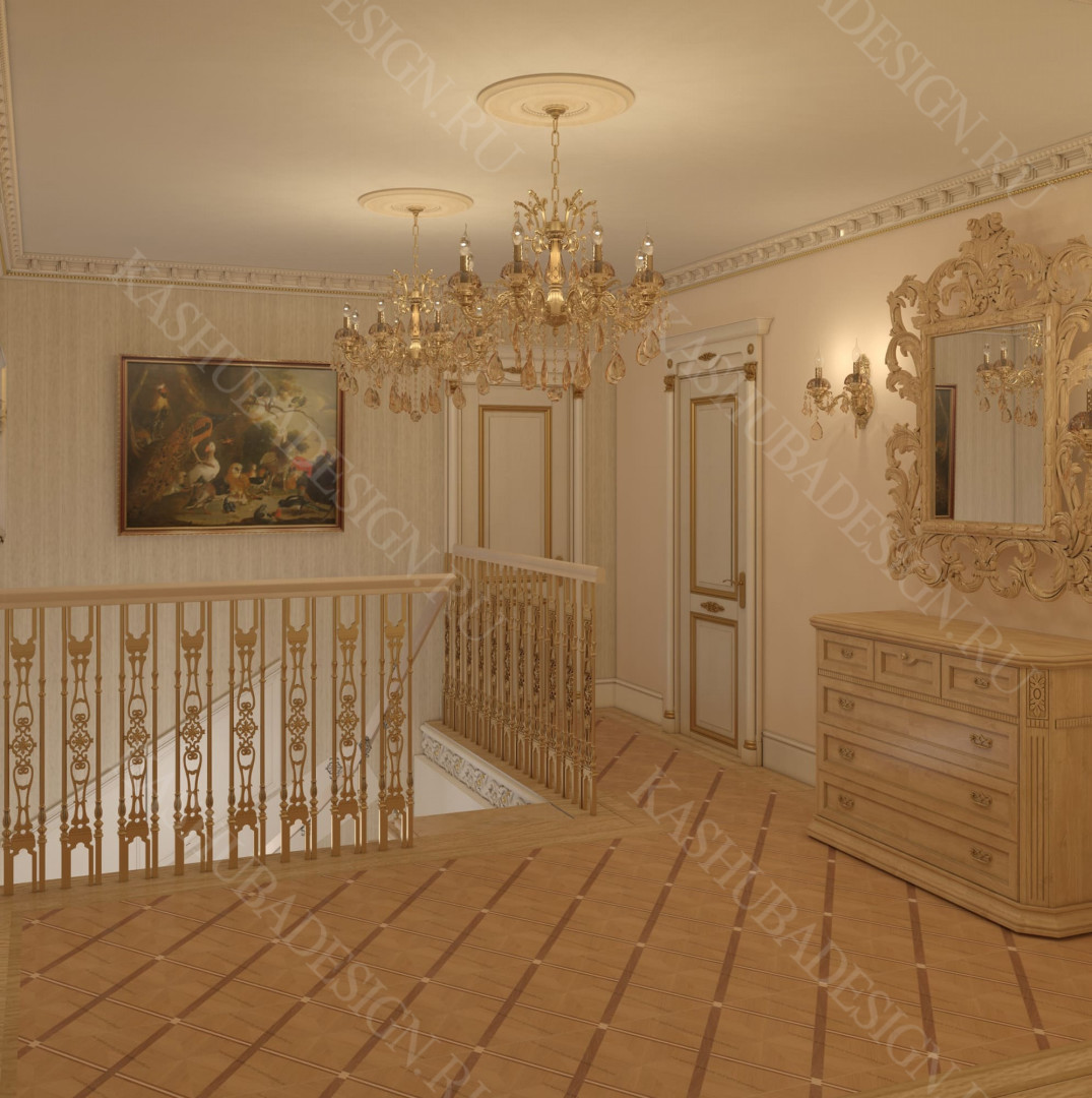 Дом общей площадью 950 кв.м. Фрагмент основных интерьеров выполнен в неоклассическом стиле. Согласно утвержденной планировке весь этаж разделен на две части...