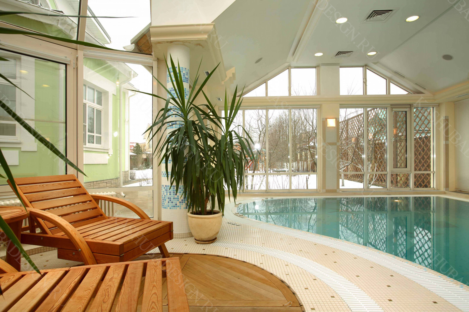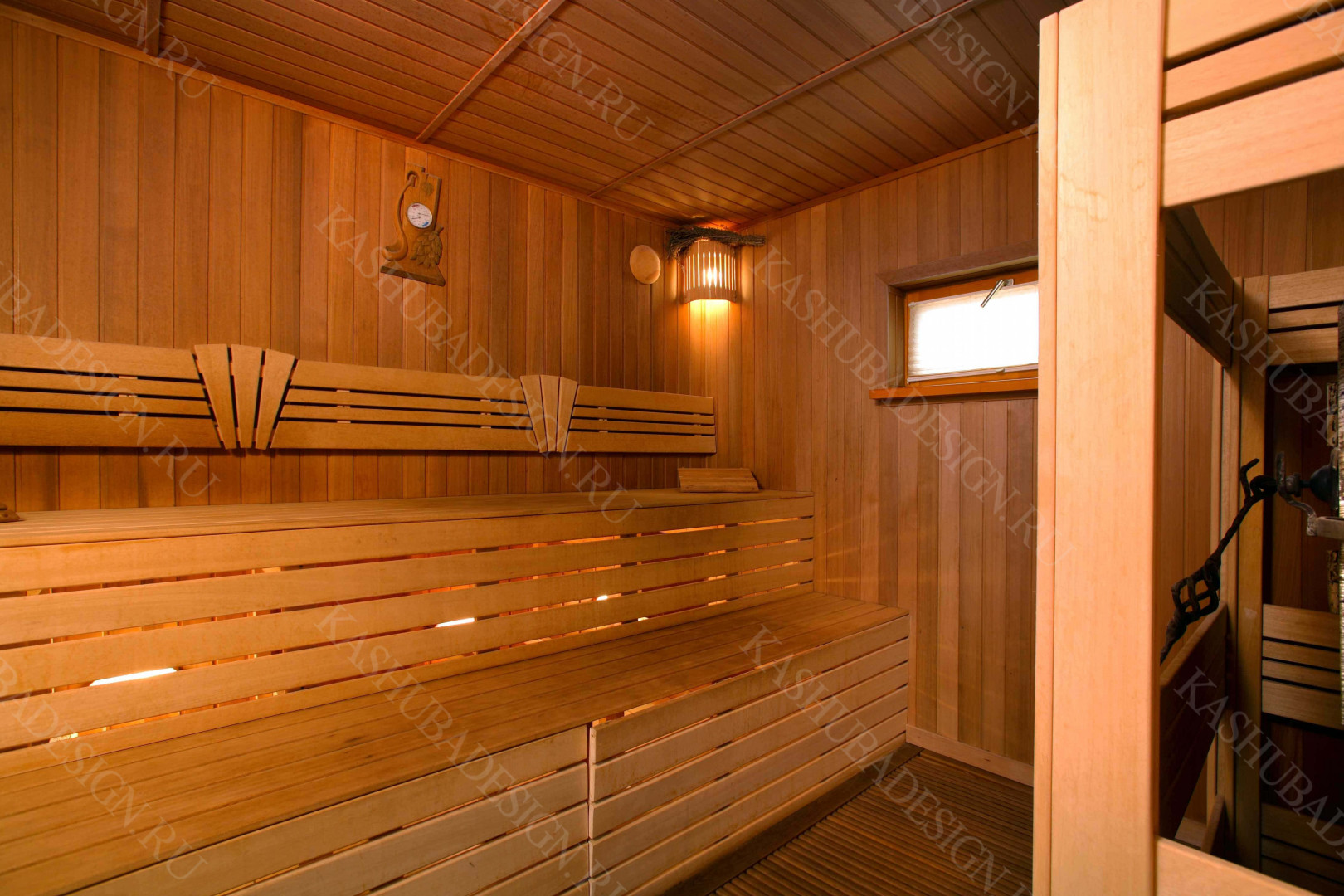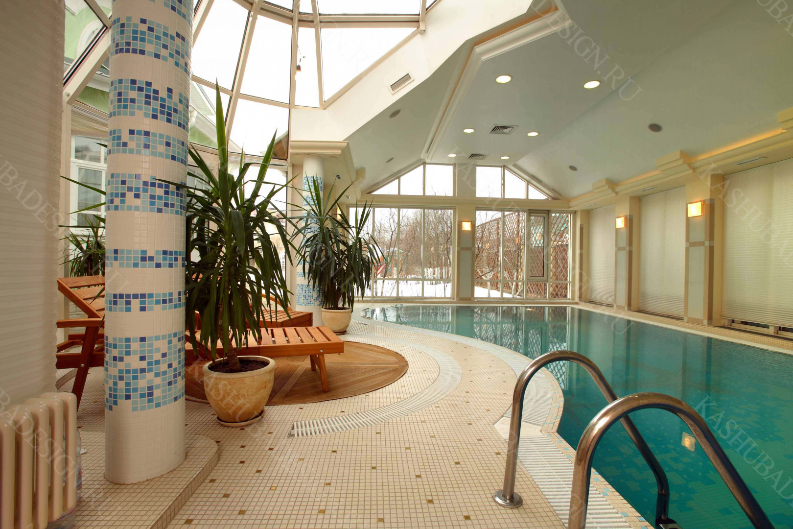 Пристроенная к загородному дому с бассейном, красивое решение Wellness – пространства. Жаль, что все это изысканное стилевое сокровище, выполненное по проекту Международного бюро интерьера и архитектуры «Kashuba Design», не лично наше. Но мы рады за умных владельцев, пригласивших квалифицированных, премиальных дизайнеров, ибо суть не в социальной ориентированности хозяев, поскольку это не роскошь, а обычный подмосковный дом бизнес-класса. Главное - авторская стилевая изысканность, вызывающая у каждого человека желание ощутить себя в этой бане с бассейном.