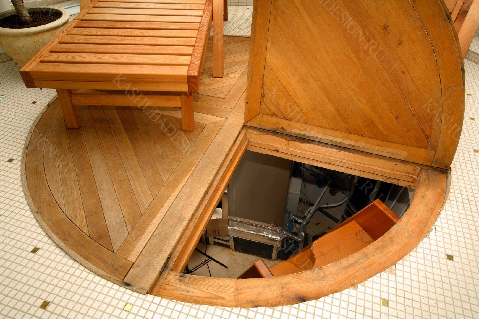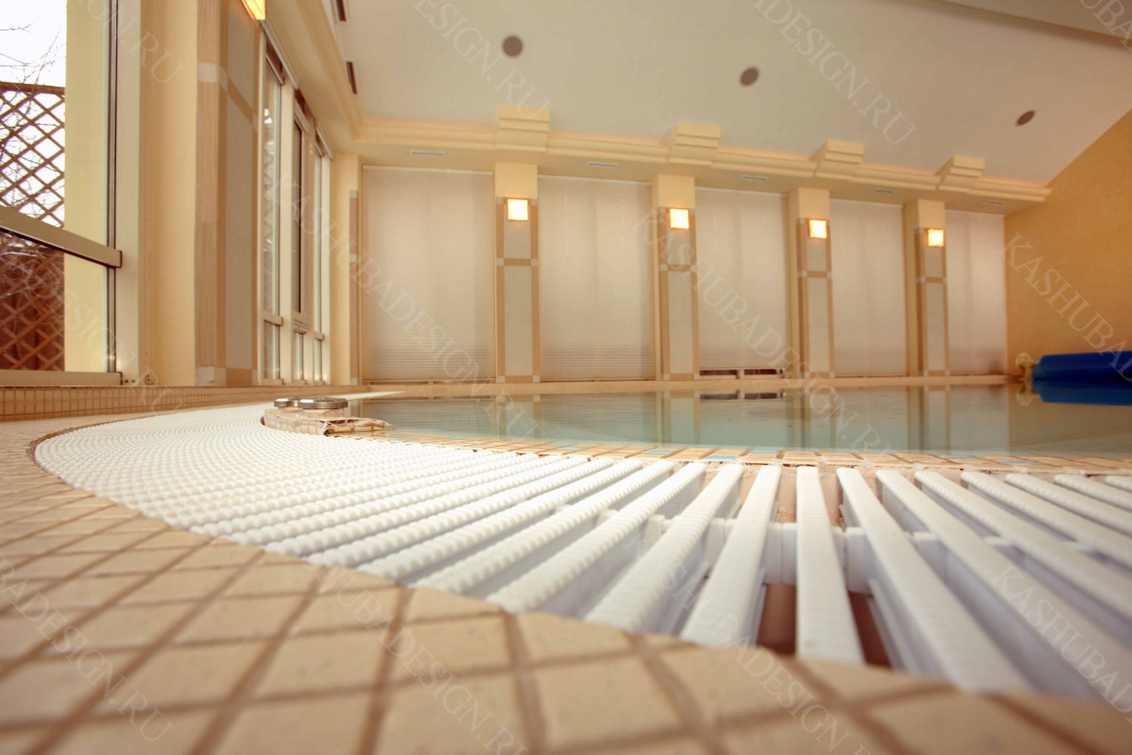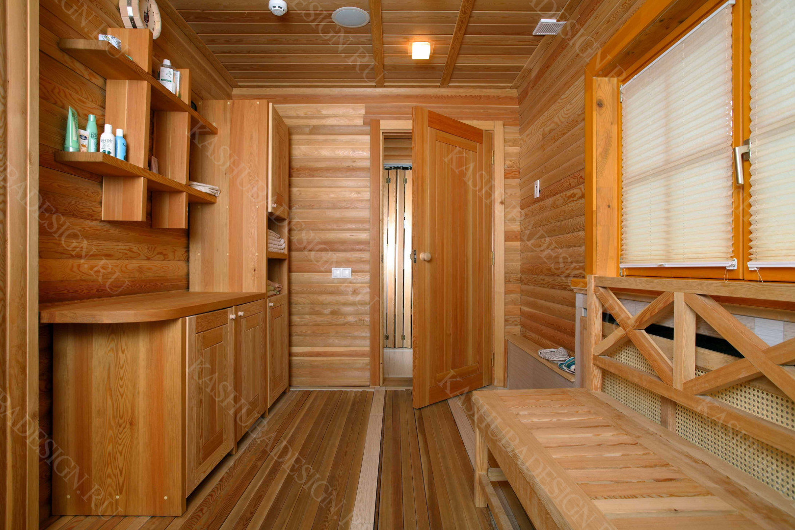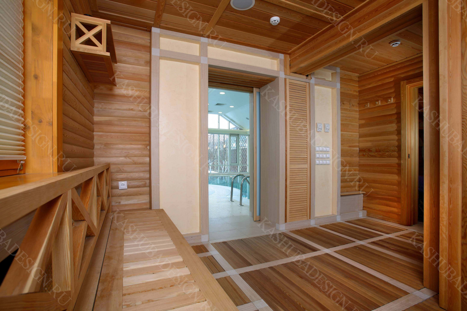 Пристроенная к загородному дому с бассейном, красивое решение Wellness – пространства. Жаль, что все это изысканное стилевое сокровище, выполненное по проекту Международного бюро интерьера и архитектуры «Kashuba Design», не лично наше. Но мы рады за умных владельцев, пригласивших квалифицированных, премиальных дизайнеров, ибо суть не в социальной ориентированности хозяев, поскольку это не роскошь, а обычный подмосковный дом бизнес-класса. Главное - авторская стилевая изысканность, вызывающая у каждого человека желание ощутить себя в этой бане с бассейном.