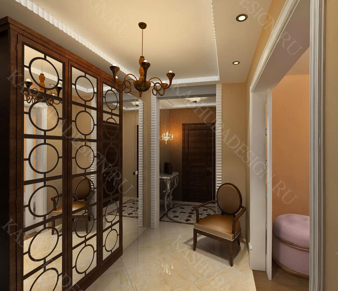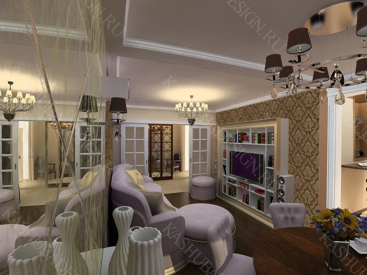 Небольшая квартира для молодой семьи отражает современную динамику комфортной жизни. Акцент сделан на применении зеркал и зонировании с помощью оригинальных перегородок, сохраняющих визуальное единство площади.