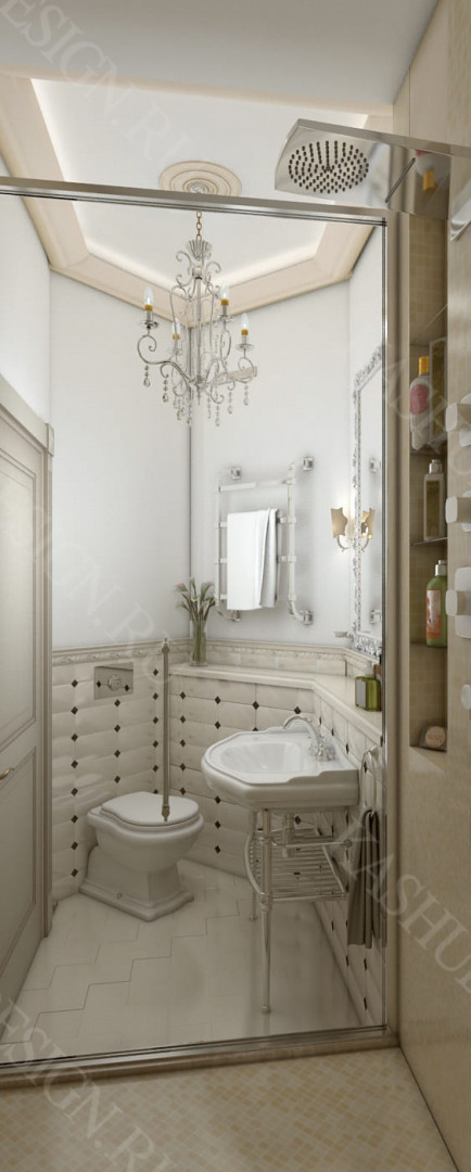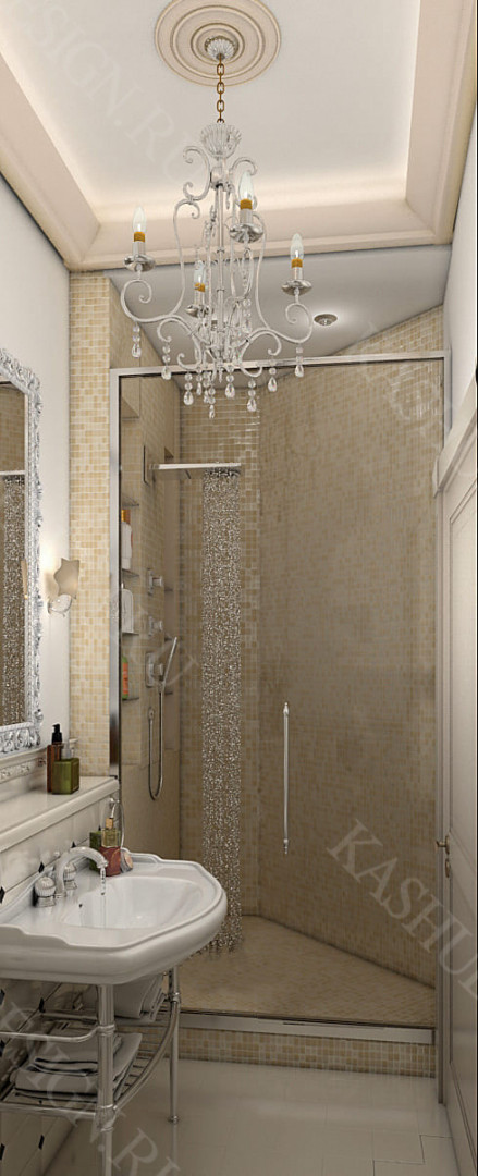 Частный дом, дизайн которого выполнен в классическом стиле, но с полифонией тем загородной жизни. Внутреннее пространство создает чувство всеохватности, поскольку включает прихожую, спальню, санузел, подсобные помещения и объединенную общим замыслом дизайнера - гостиную, столовую, кухню. При этом, обеденная зона - кухня со столовой, за счет разного уровня пола, расположена на подиуме, что позволило визуально отделить её от гостиной.