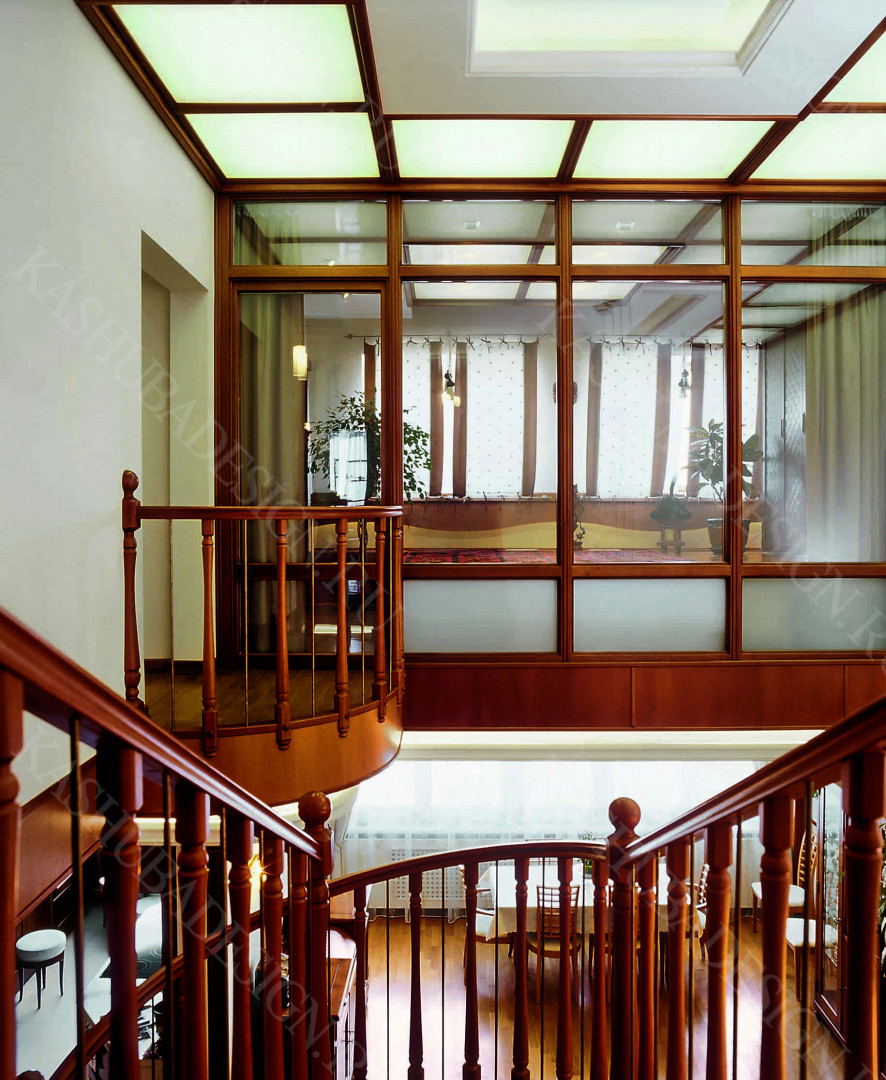 Данные помещения выполнены в строгом стиле, который придает торжественный, возвышенный тон всей квартире. С точки зрения логики оформления дизайн элитного интерьера, улавливаются главные акценты, пропорции, хотя арт фото современных интерьеров не дают достаточно полного представления о характере всего внутреннего убранства большой квартиры. Эстетика и пластика предметов интерьера, использование натуральных материалов, витражей, их формы, обращены к современному человеку. Словом, дизайн двухуровневой квартиры – красивый интерьер без претензий, лучший интерьер для жизни.