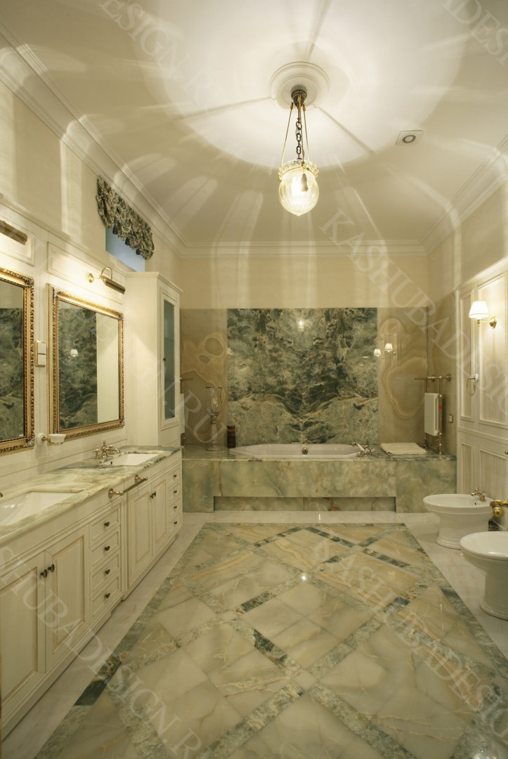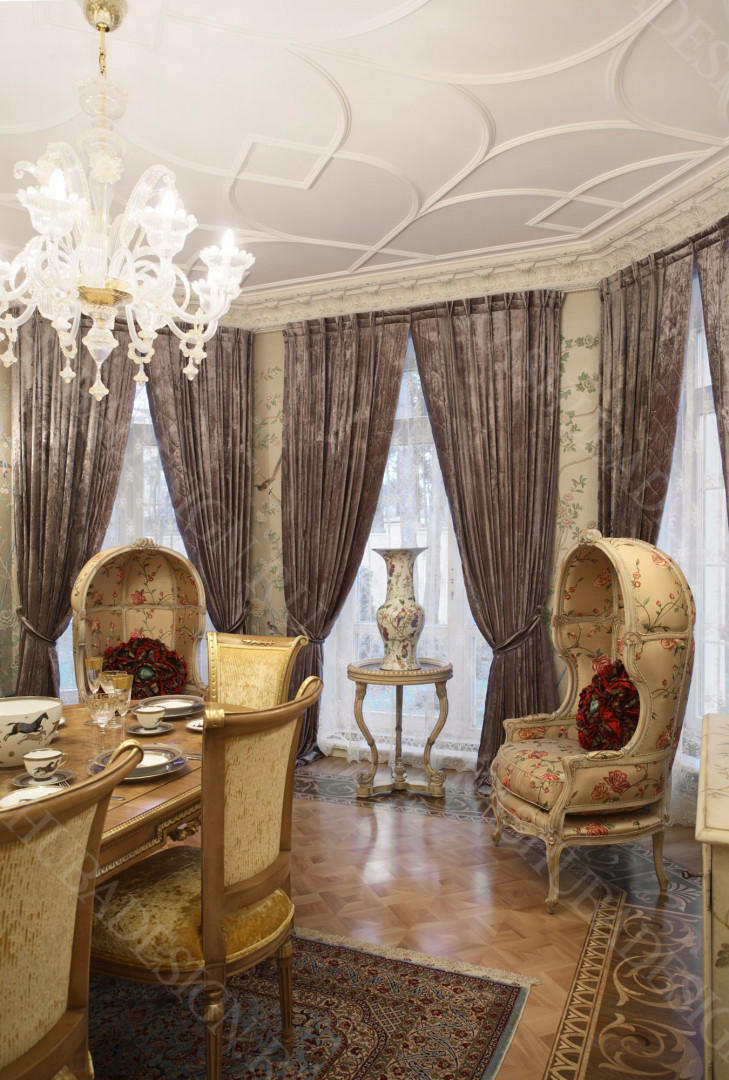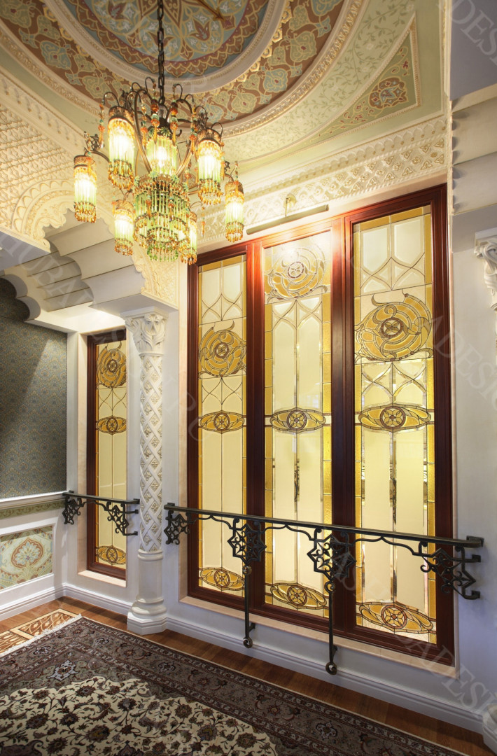 В интерьере этого дома отражена особенность стиля жизни его хозяев: респектабельность европейской классики сочетается в нем с восточной роскошью и этнической самобытностью. Этот элитный дизайн интерьера вызывает ощущение сложного, насыщенного пространства благодаря продуманному и выразительному декору, богатой гамме цветов и фактур: использованы качественные породы дерева и драгоценные сорта камня, авторская мозаика и уникальный текстиль, произведения искусства и мебель. Архитектура и дизайн интерьеров резиденции популярны и известны в 20 странах мира, они победители Международных конкурсов. Лучшие интерьеры и красивые интерьеры нравятся всем. Интерьер резиденции занял первое место в международном конкурсе и отмечен призом. Часть объекта - аквазона, стала победителем, лауреатом VI международного конкурса «AQUA престиж» Союза архитекторов России и World Expo Group «Красивое решение Wellness – пространства» -2012, в номинации «частный бассейн». Работа экспонировалась на выставках дизайнеров интерьера, архитекторов в Москве «INTERIOR – FEST 2012-2014», иных коллективных художественных выставках, конкурсах, международных архитектурно- строительных выставках:«Buildex», «Batimat Russia»,«Красивые дома», Московский Международный Мебельный Салон 2013-2014, Международная выставка Мебельный клуб Premium, на конференциях, семинарах, форумах в России, Польше, Италии, Китае.