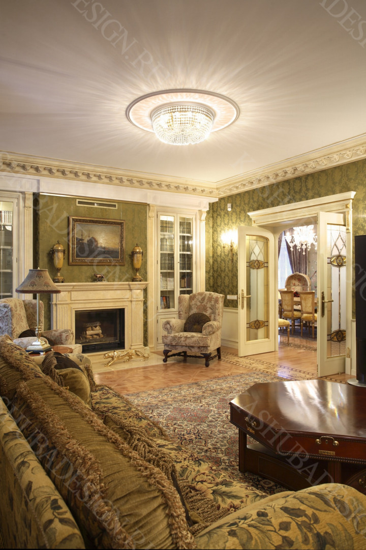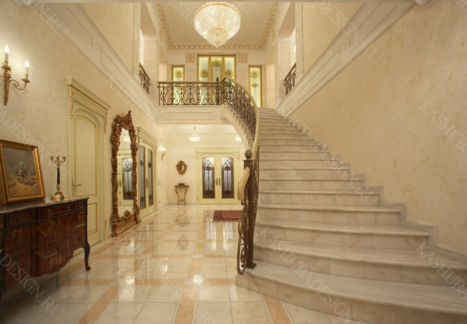 Загородная резиденция выполнена по проекту Международного бюро интерьера и архитектуры «KASHUBA DESIGN». Эта высокохудожественная изысканная классика для «рублёвки» не новость и она точно никого не портит. Трудно не согласиться с архитектором Мигелем Родригесом, дизайн меняет облик страны. Любопытно каждому познавать интерьер-люкс, возможно и себя представлять в нем. Реальный интерьер интереснее изучать и осознавать находясь непосредственно в нём, погружаясь в воздух жизни трехмерного пространства, но «вживую» видеть даже лучшие интерьеры, частную собственность, посторонние люди не могут и не должны. Здесь важны наука и технологии, как прикладные сферы высокохудожественных явлений дизайна интерьера и ландшафта, трактующие творчество расширительно.