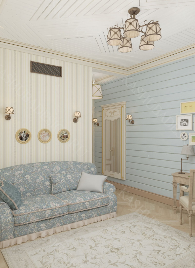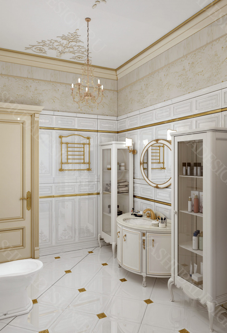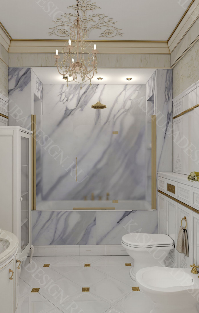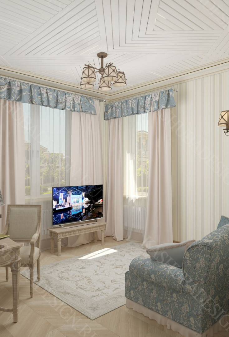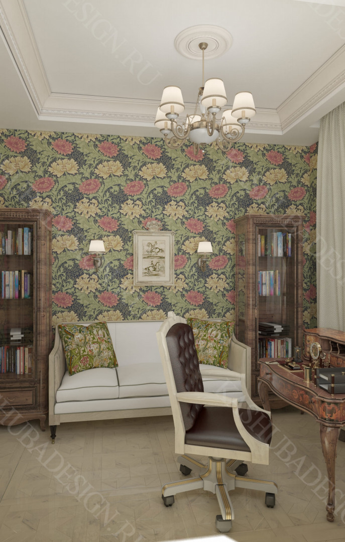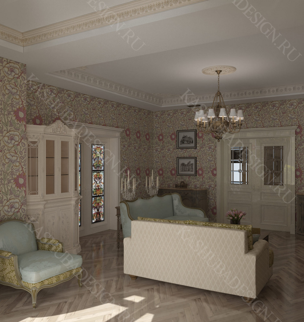 Дом в Подмосковье, общей площадью 402 м2, с отдельно стоящим гаражом на две машины, и участком площадью 3500 м2 выполнен в классическом стиле с элементами русского стиля. По планировке, состоит из двух этажей и холодного чердака. На первом этаже находится бассейн, сауна, санузел, просторный зимний сад с бильярдным столом, домашним кинотеатром и электроялем, гостиная с изразцовым камином, кухня, гостевая спальня с санузлом и постирочная. На втором этаже располагается хозяйская часть дома, состоящая из большой спальни, кабинета, гардеробной и санузла, детская часть - детская комната с санузлом и гардеробной и гостевая спальня. Из холла 2 этажа на холодный чердак ведет люк с выдвижной лестницей с электроприводом. На чердаке размещается оборудование приточно-вытяжной системы вентиляции. В отделке преобладают натуральные материалы, дерево, мрамор, гипсовая лепнина. Пол на 1 этаже дома выложен керамогранитом с подогревом.