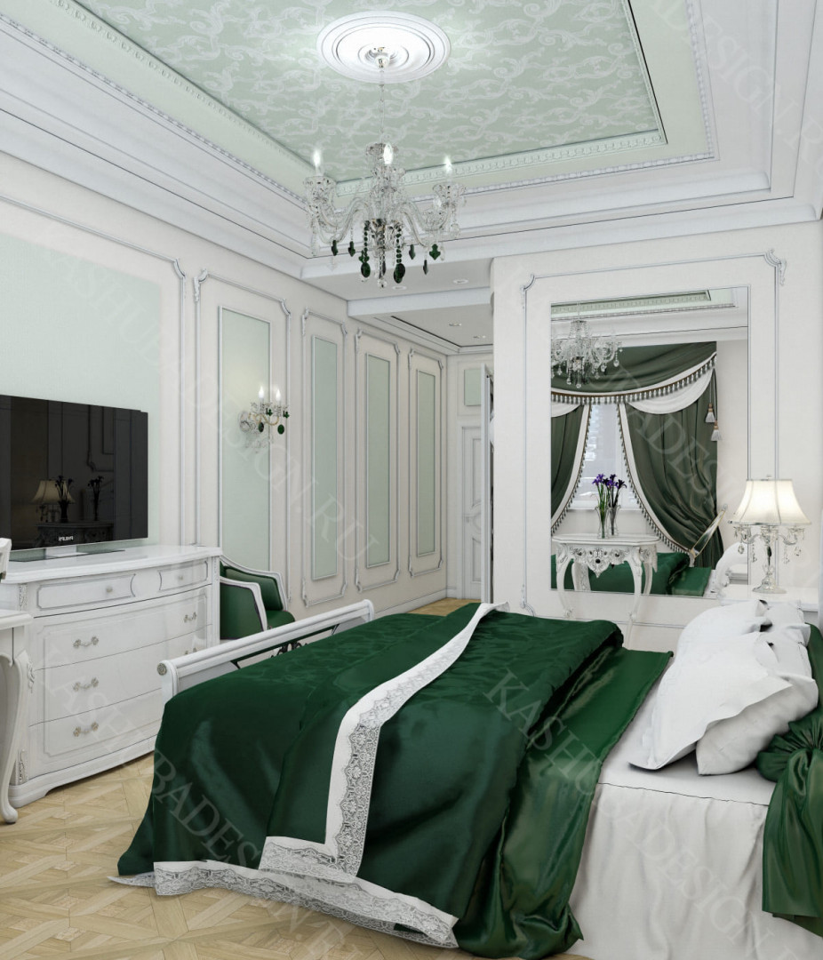 Профессионалам, создателям красивого интерьера, не трудно создать людям настроение с помощью цвета. В интерьере данной московской квартире, цвета и многочисленные оттенки плавно перетекают один в другой, обеспечивая правильное воздействие цвета и света на организм, что благоприятно сказывается на самочувствии живущих в помещениях.Свет и цвет, важные аспекты дизайна интерьера, позволяющие человеку оставаться здоровым, получать положительные эмоции и накапливать отличное настроение, пригодное в любое время суток. Цвет свежей весенней зелени, зеленые переливы материала в спальне успокоят семейную пару, придадут чувство удовлетворенности и гармонии, погрузят в атмосферу умиротворенности. Кабинет у окна, с видом на столицу, дневной свет, способствуют творческой деятельности, стимулируют мыслительные процессы, улучшают память.