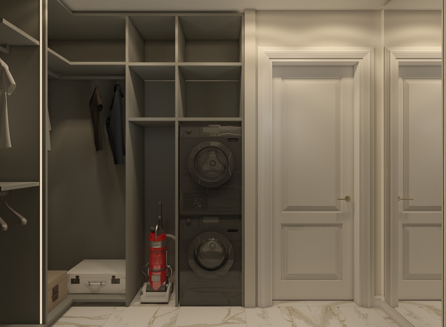 Дизайн - проект квартиры 78,5 кв.м. в жилом доме в Санкт-Петербурге для высокого уровня жизни. Квартира в ЖК «Цивилизация на Неве». Квартира с черновой отделкой (проведены коммуникации, частично оштукатурены стены, залита стяжка). В квартире предполагается скорректировать существующую планировку и заново провести все коммуникации. Сотрудниками бюро была проведена работа по перепланировке квартиры. По пожеланию заказчиков новой планировкой в квартире предусмотрены: коридор, гардеробная при входе, гостиная, кухня, гостевая комната, технический балкон, гардеробная с постирочной, ванная с душевой зоной, спальня.