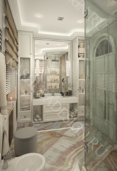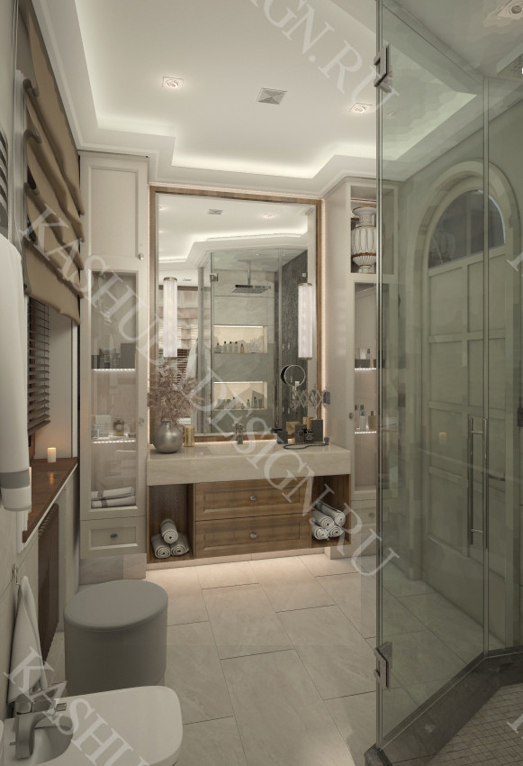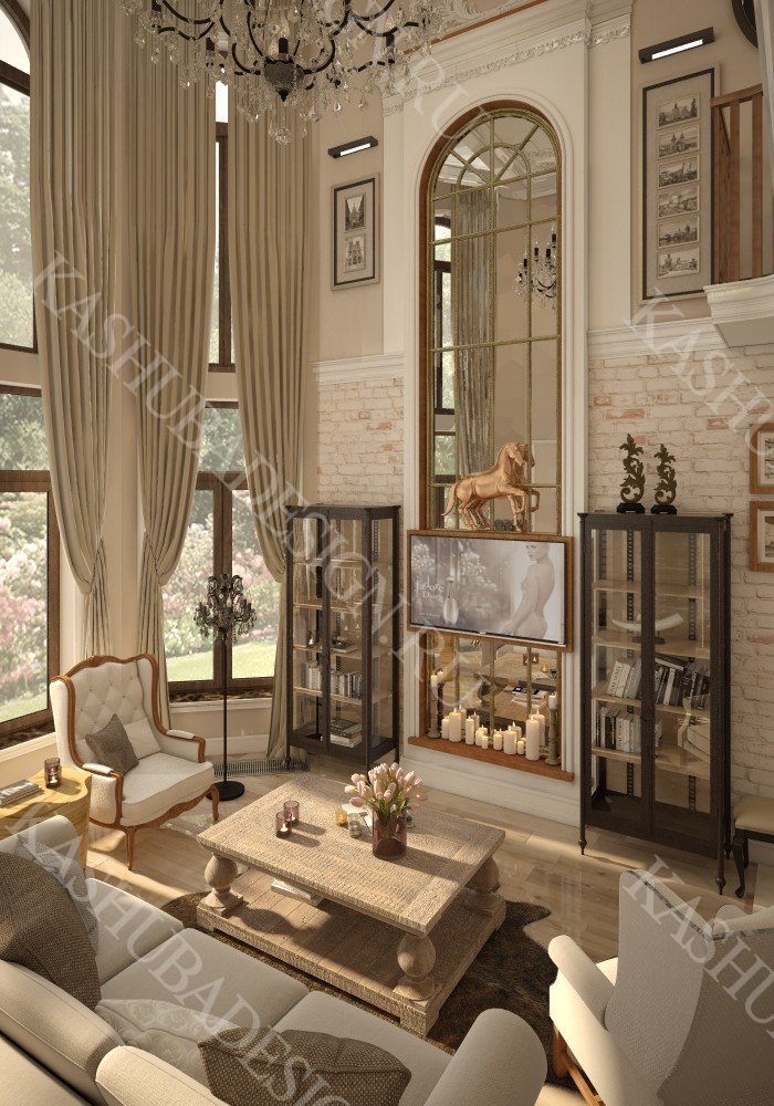 Проект реконструкции загородного жилого дома общей площадью 550 м2. Дизайн-проект выполнен по помещениям 1 этажа: холл, коридор, кабинет, ванная, гостиная. По 2 этажу: холл, гардеробная, 3 ванных. Дизайн-бюро KASHUBA DESIGN проведена масштабная работа по реконструкции дома. Проект выполнен под ключ, от разработки проекта (архитектурные, инженерные проекты) до реализации.