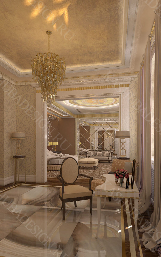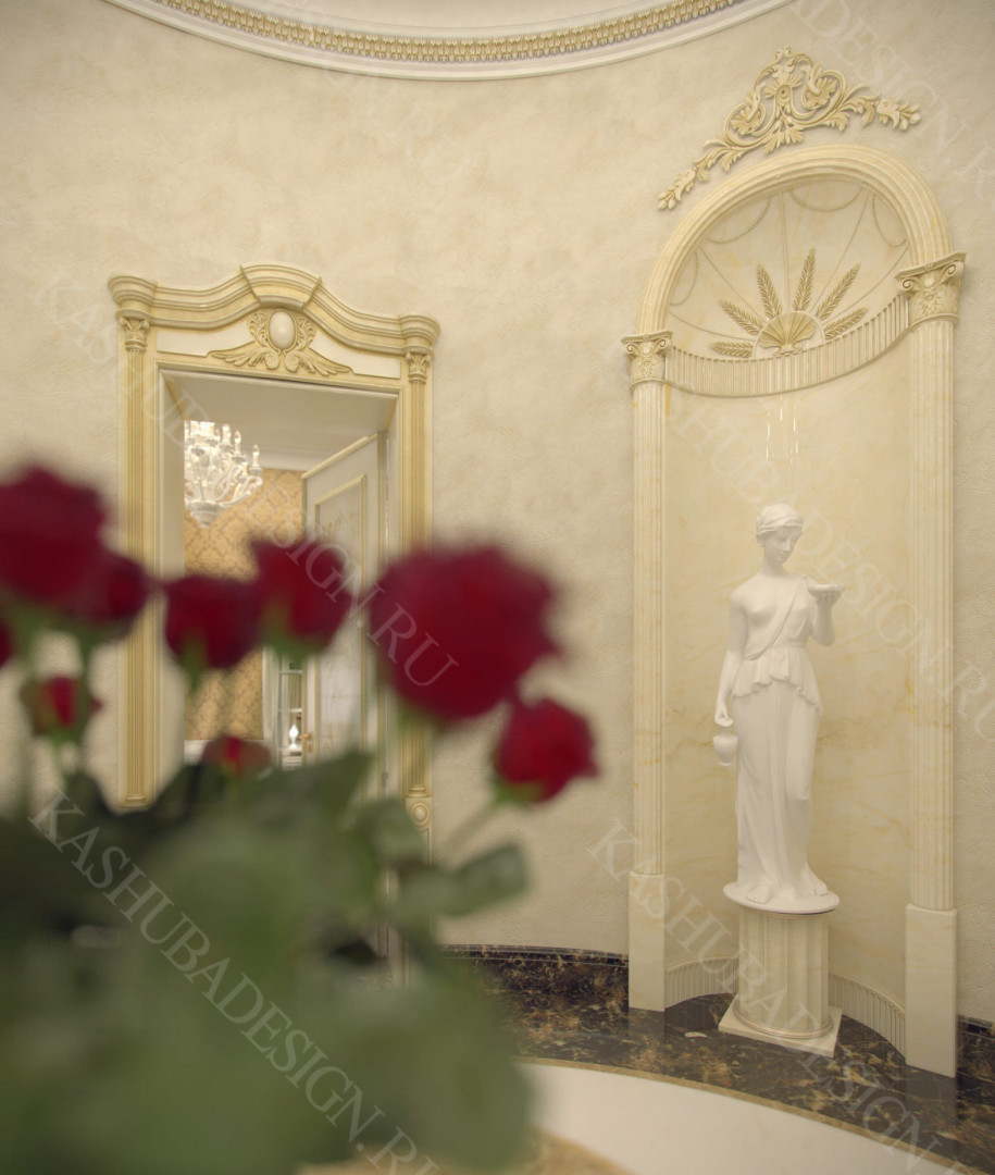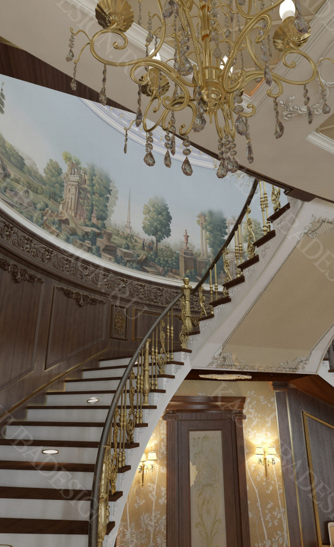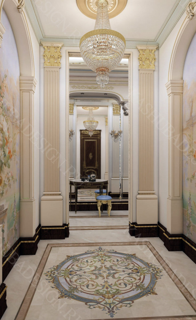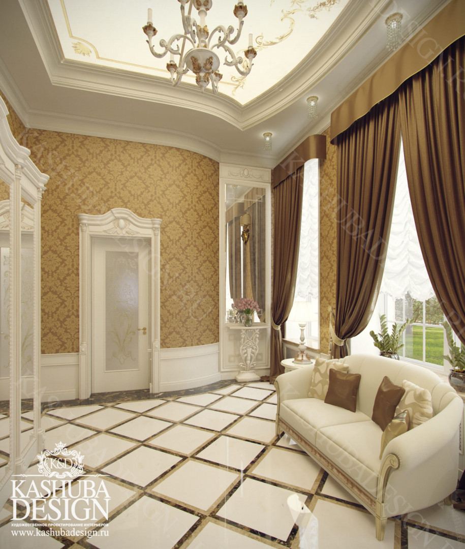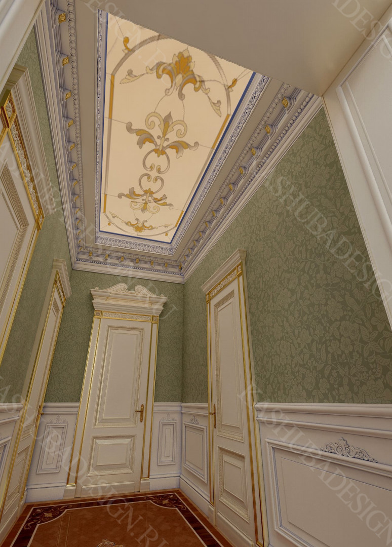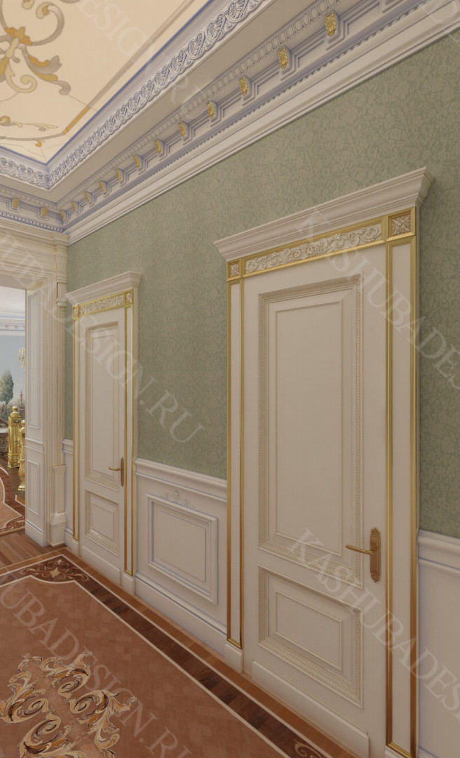 Для всех помещений усадьбы (высота потолков не менее 3-5 метров) характерна красота композиции, дозированное внедрение деталей и упорядоченность декоративного оформления, которые становятся выразительными тональными нюансами, растворяются в глубине пластичного объема, конструктивных решений. За их статичностью в пространстве, скрывается экспрессия прочтения. Очевидно, доминирует стиль - классика, что позволяет отнести роскошные интерьеры особняка к эклектичному дворцовому варианту. Здесь все на месте, все удалось и актуально, удивительно гармонично сочетание черт изящного аристократизма со сдержанным шиком всех входящих в интерьер элементов, предметов, мебели, посуды, осветительных приборов и пр. Если лучшие интерьеры и красивые интерьеры, то в них таится нечто большее, чем изысканность и роскошь.