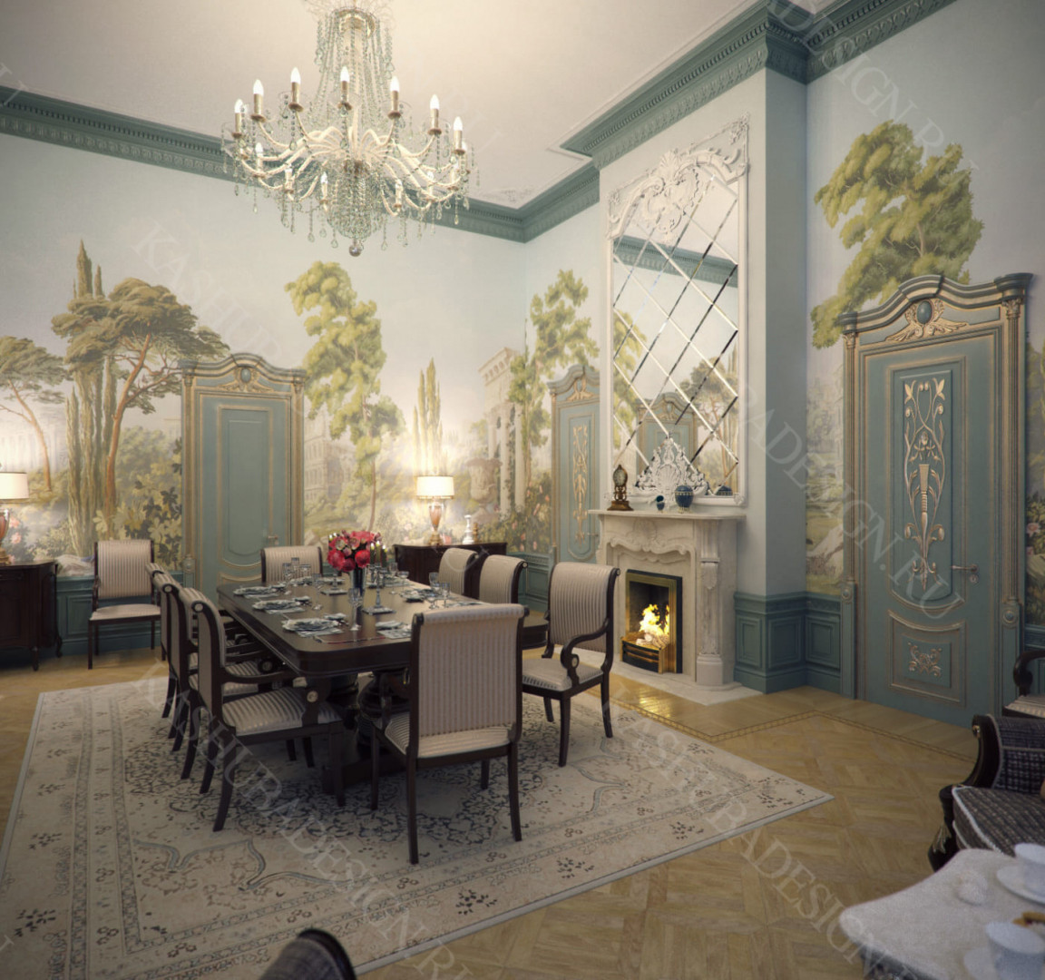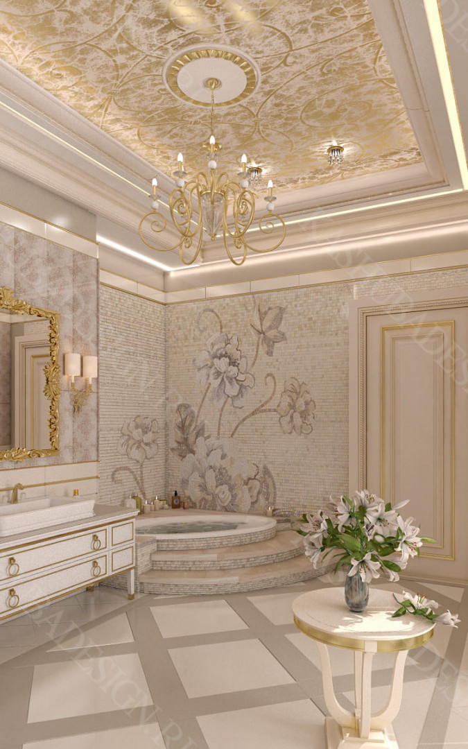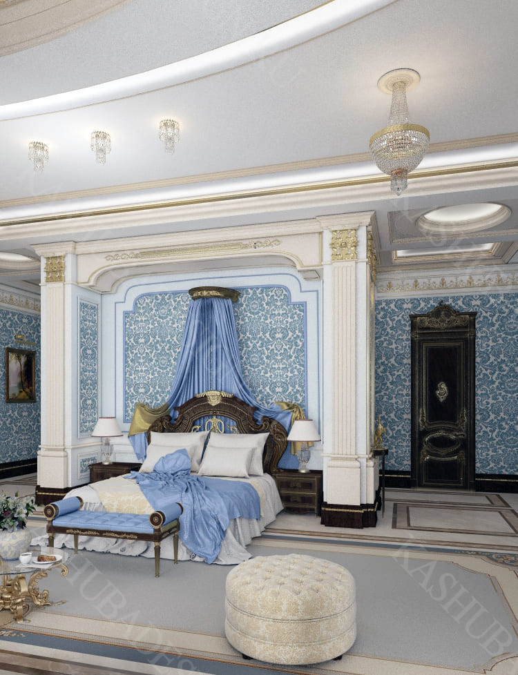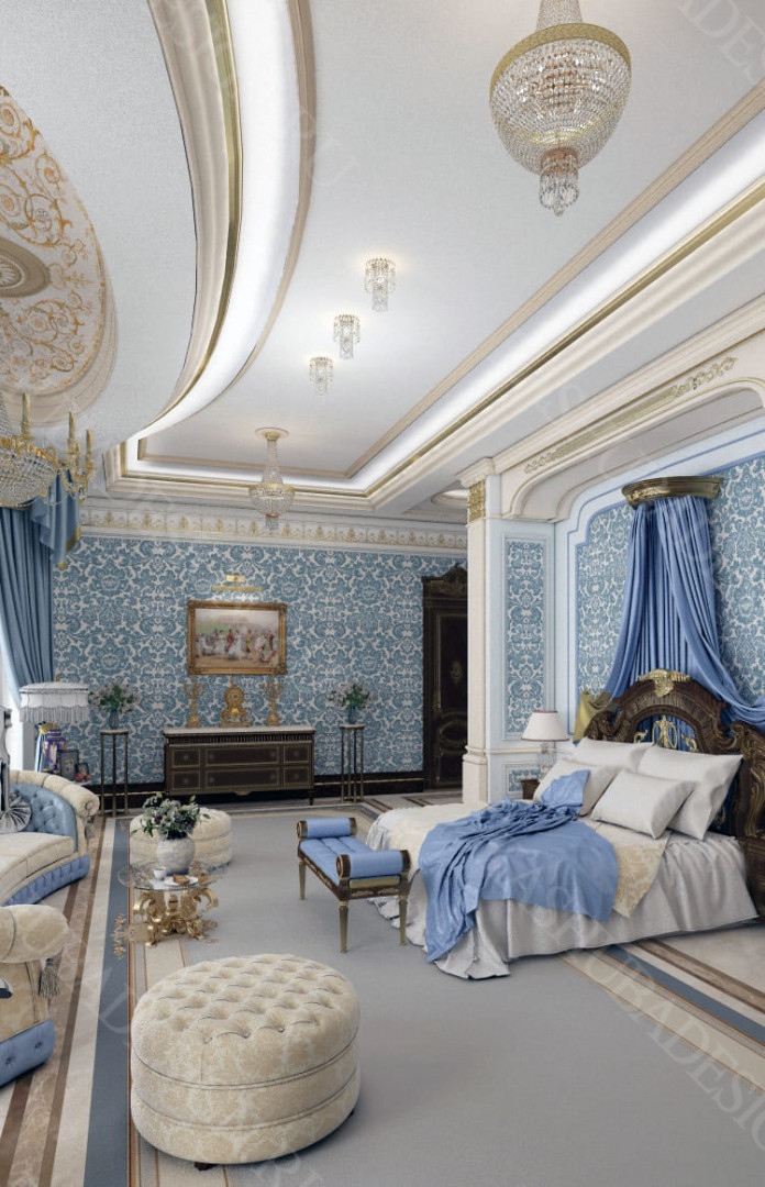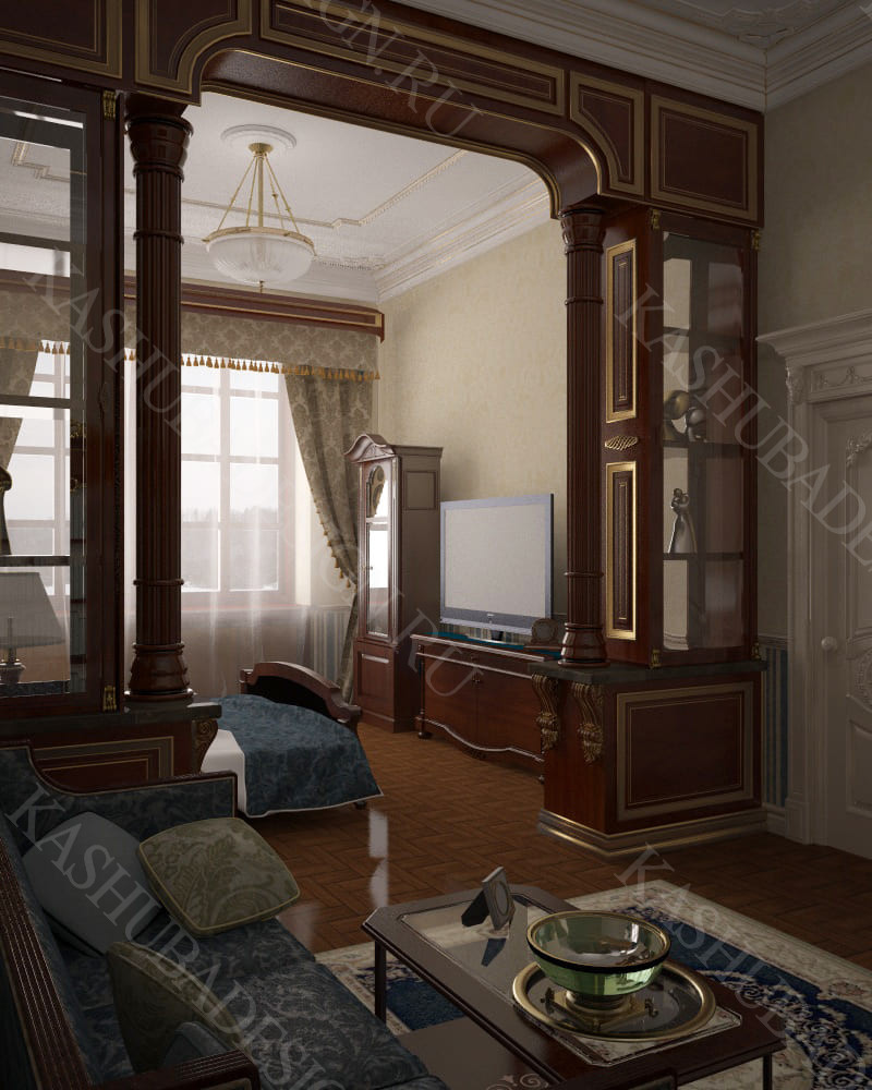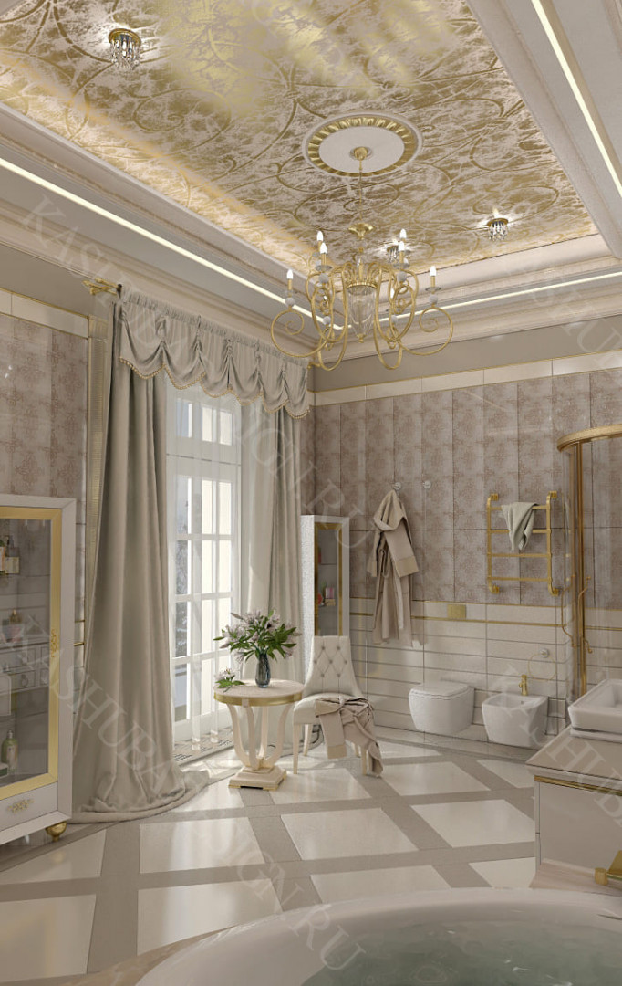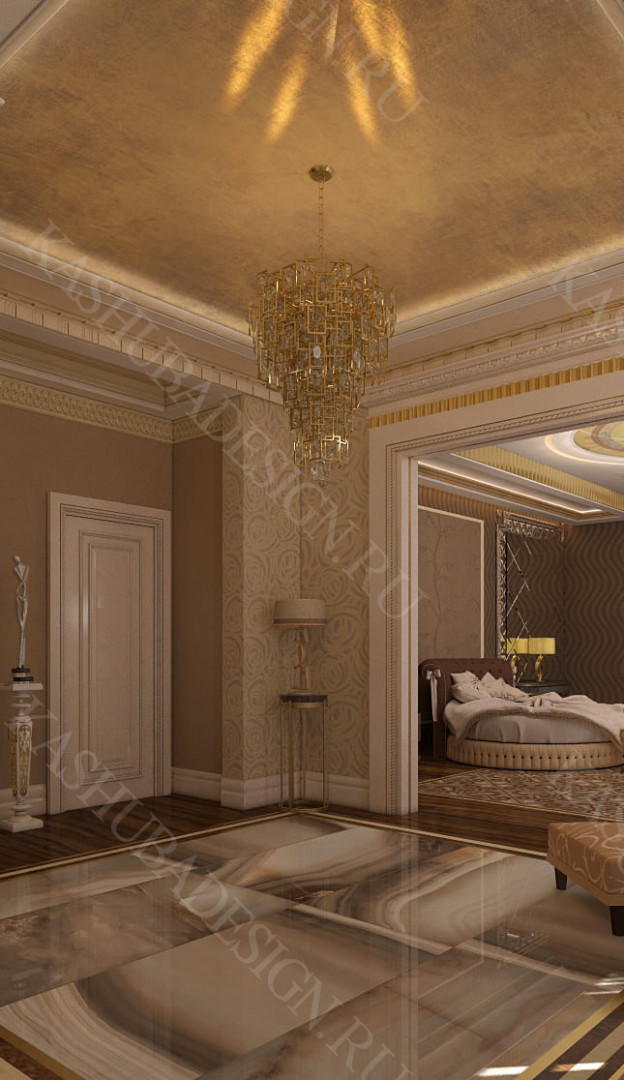 Для всех помещений усадьбы (высота потолков не менее 3-5 метров) характерна красота композиции, дозированное внедрение деталей и упорядоченность декоративного оформления, которые становятся выразительными тональными нюансами, растворяются в глубине пластичного объема, конструктивных решений. За их статичностью в пространстве, скрывается экспрессия прочтения. Очевидно, доминирует стиль - классика, что позволяет отнести роскошные интерьеры особняка к эклектичному дворцовому варианту. Здесь все на месте, все удалось и актуально, удивительно гармонично сочетание черт изящного аристократизма со сдержанным шиком всех входящих в интерьер элементов, предметов, мебели, посуды, осветительных приборов и пр. Если лучшие интерьеры и красивые интерьеры, то в них таится нечто большее, чем изысканность и роскошь.