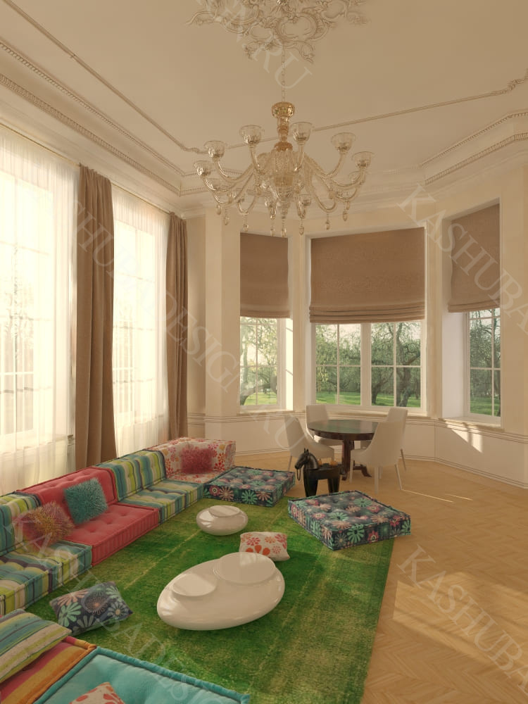 Дизайн дома, безусловно, сложнее, он отличается от дизайна элитных квартир, ибо до этапа дизайн-проекта нужен учет ландшафта, почвы, растительности и пр. факторов. Т.е. до проекта, даже эскизов, начинается большая работа. Здесь за месяц никому не управиться, даже несмотря на нашу богатую практику, связанную с усадьбами, особняками, коттеджами, загородными домами и дачами. Мы вместе с заказчиками выбрали нужный стиль, составили проект, подобрали строителей, материалы, мебель и т.д. Вопрос цены за работу не стоял, оплачивали и срочные поставки оборудования с гарантиями производителей, главным был оперативный итог, люксовый конечный результат, которым заказчик остался доволен.