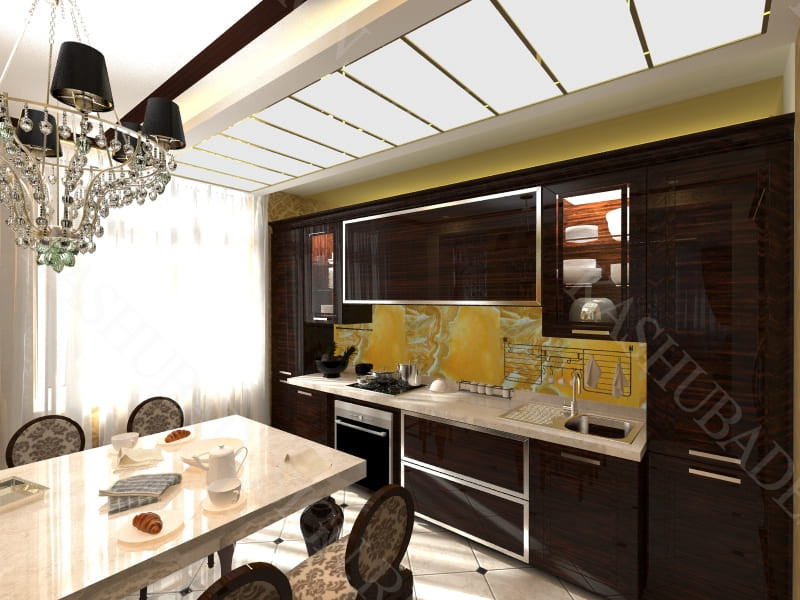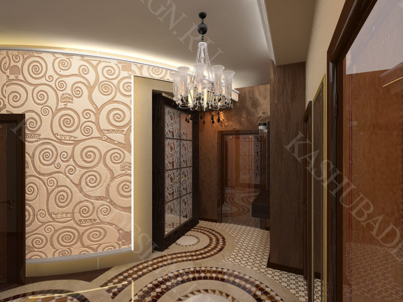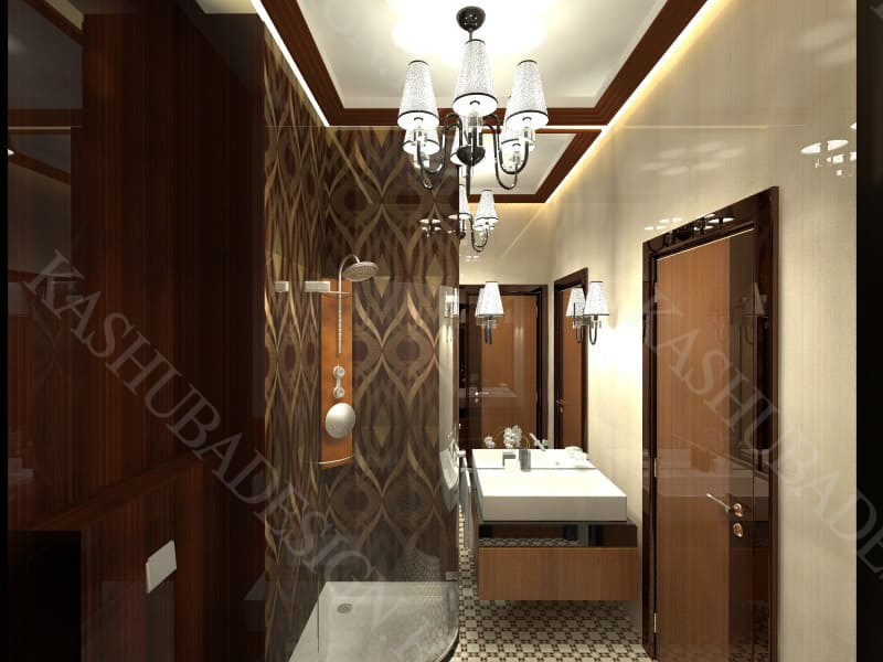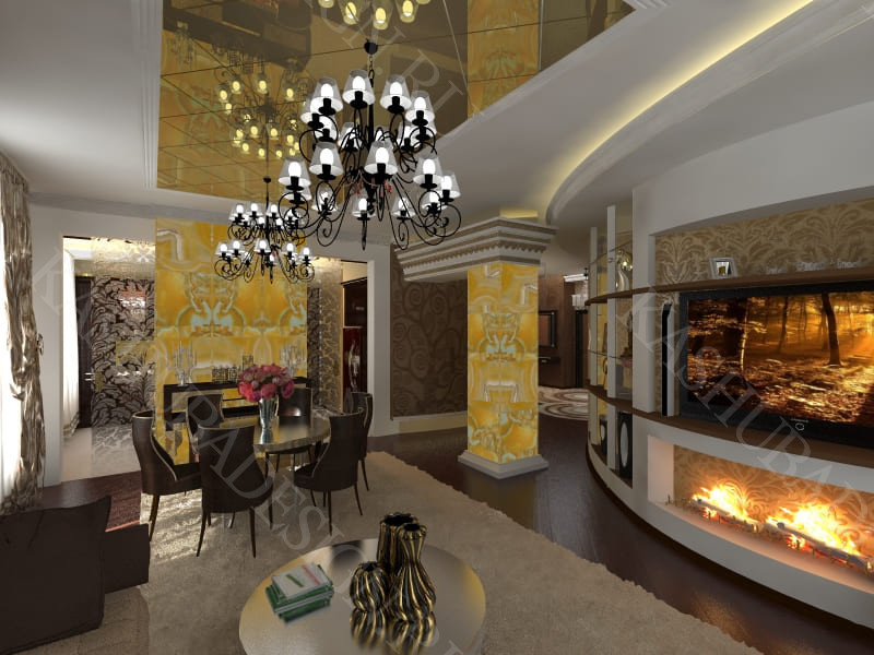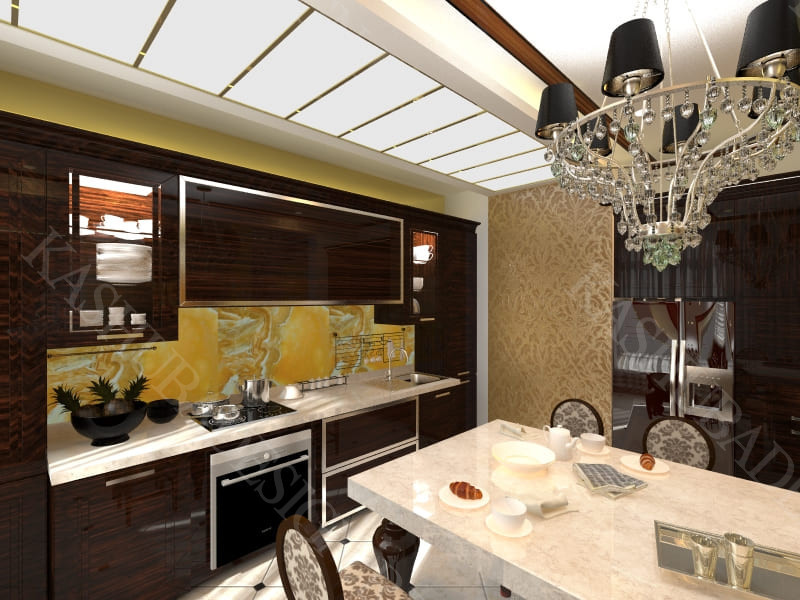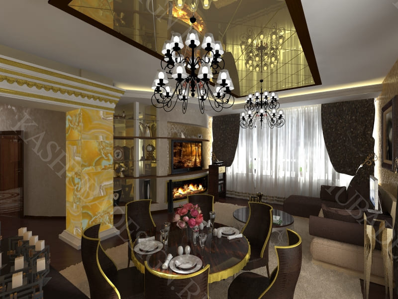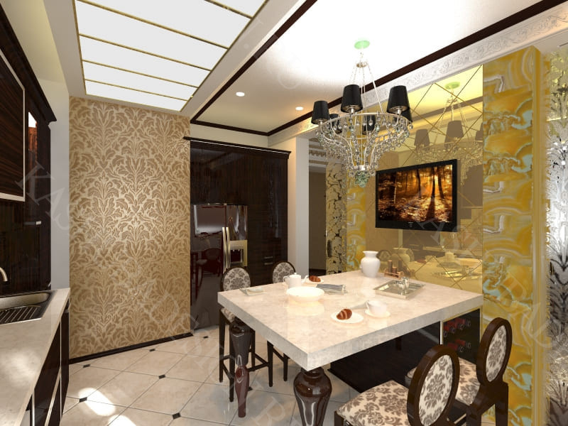 Московская квартира в центре города выполнена в стиле арт-деко. Кухня отделена от гостиной стеклянными дверями, что сохраняет единство пространства. Особый интерес представляет детская комната выполненная в стиле реализации сказок и желаний ребёнка.