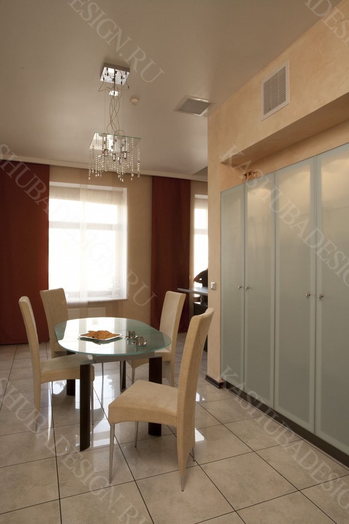 Этот проект яркий пример творческого тандема архитекторов и заказчиков - все продумано до мелочей и выдержано в спокойных бежевых тонах. Словом – интерьер без претензий, интерьер для жизни. Работа опубликована в профильных глянцевых журналах, экспонировалась на выставках дизайнеров интерьера, архитекторов в Москве «INTERIOR – FEST 2012 - 2014», иных коллективных художественных выставках, конкурсах, международных архитектурно- строительных выставках:«Buildex», «Batimat Russia», «Красивые дома», Московский Международный Мебельный Салон, Международная выставка Мебельный клуб Premium, на конференциях, семинарах, форумах в России, Польше, Италии, Китае.